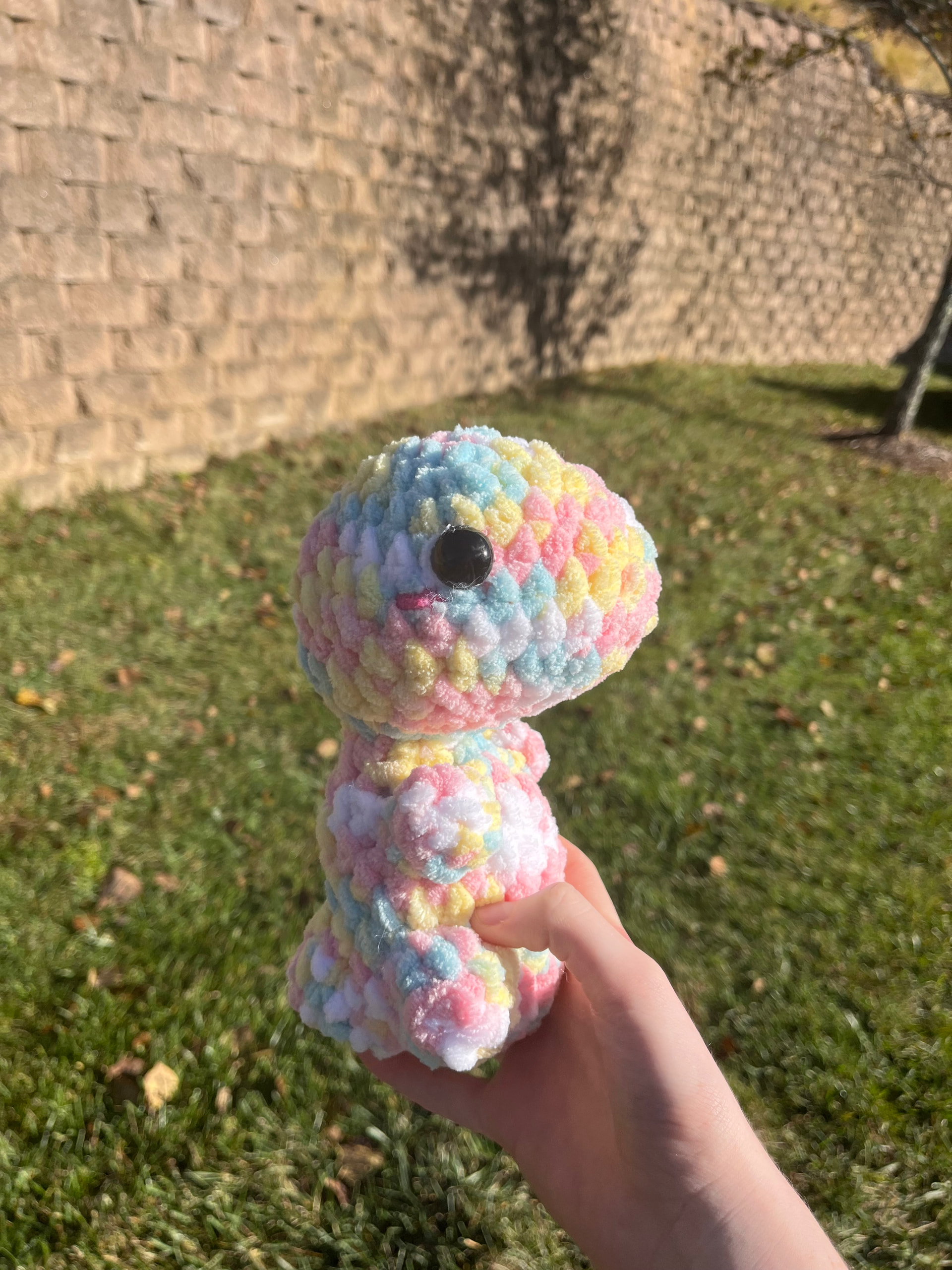 I love him!!! And NEED him!!! lol! Would love to test again for you! Iβd be likely using L&T Posh Purl with a 4.5mm hook, but might have colors in Bernat Blanket and a 6mm hook!