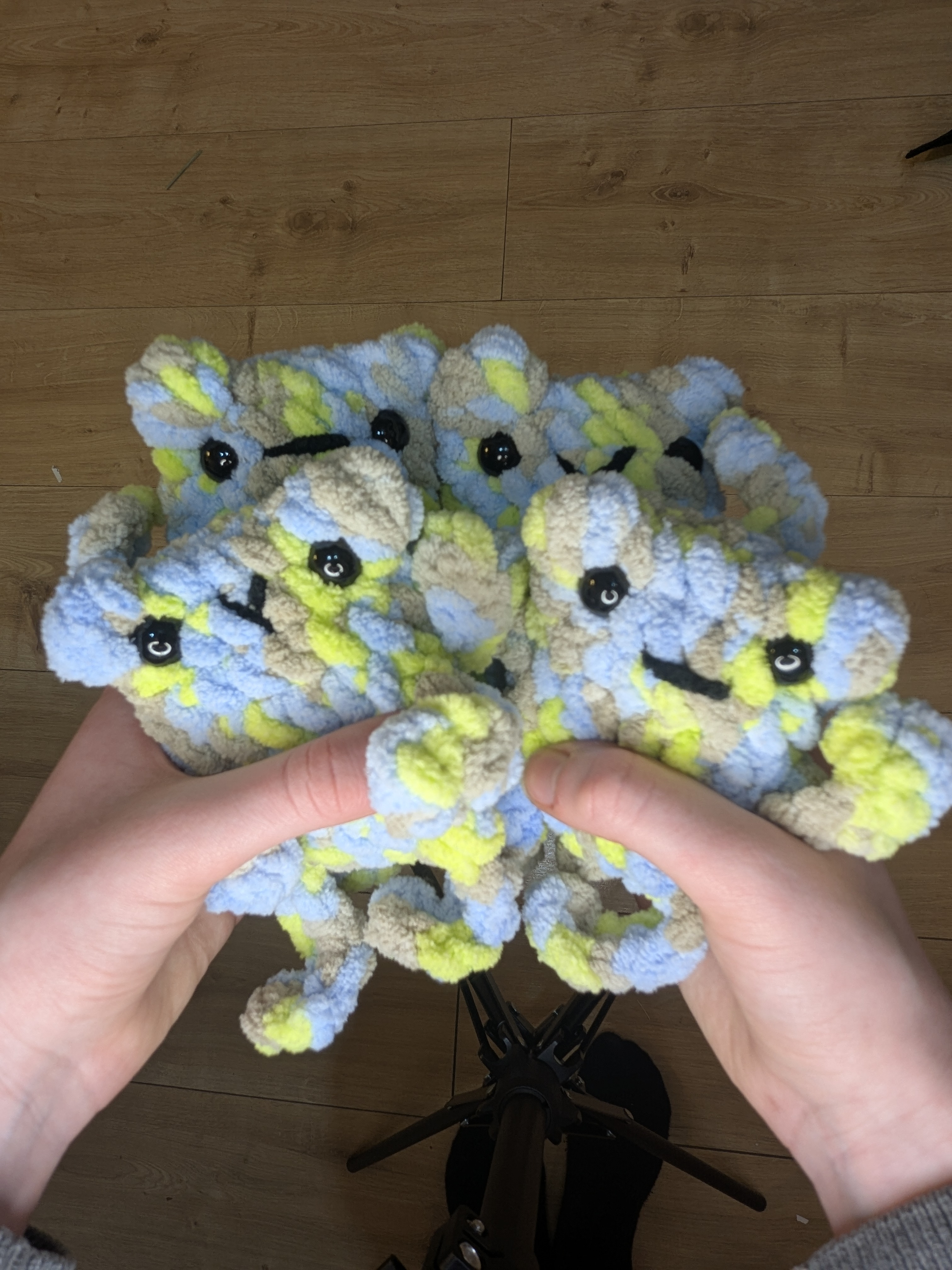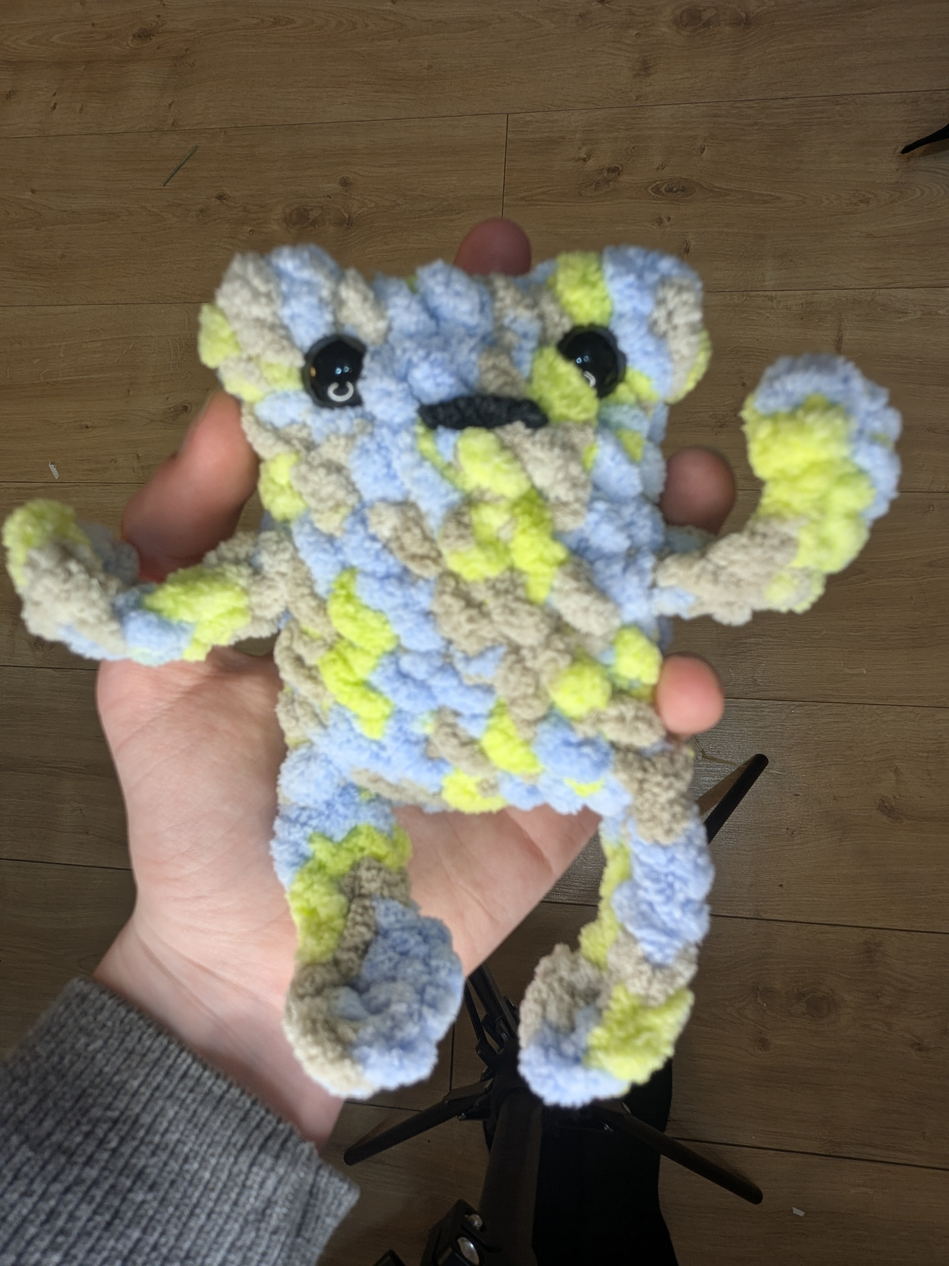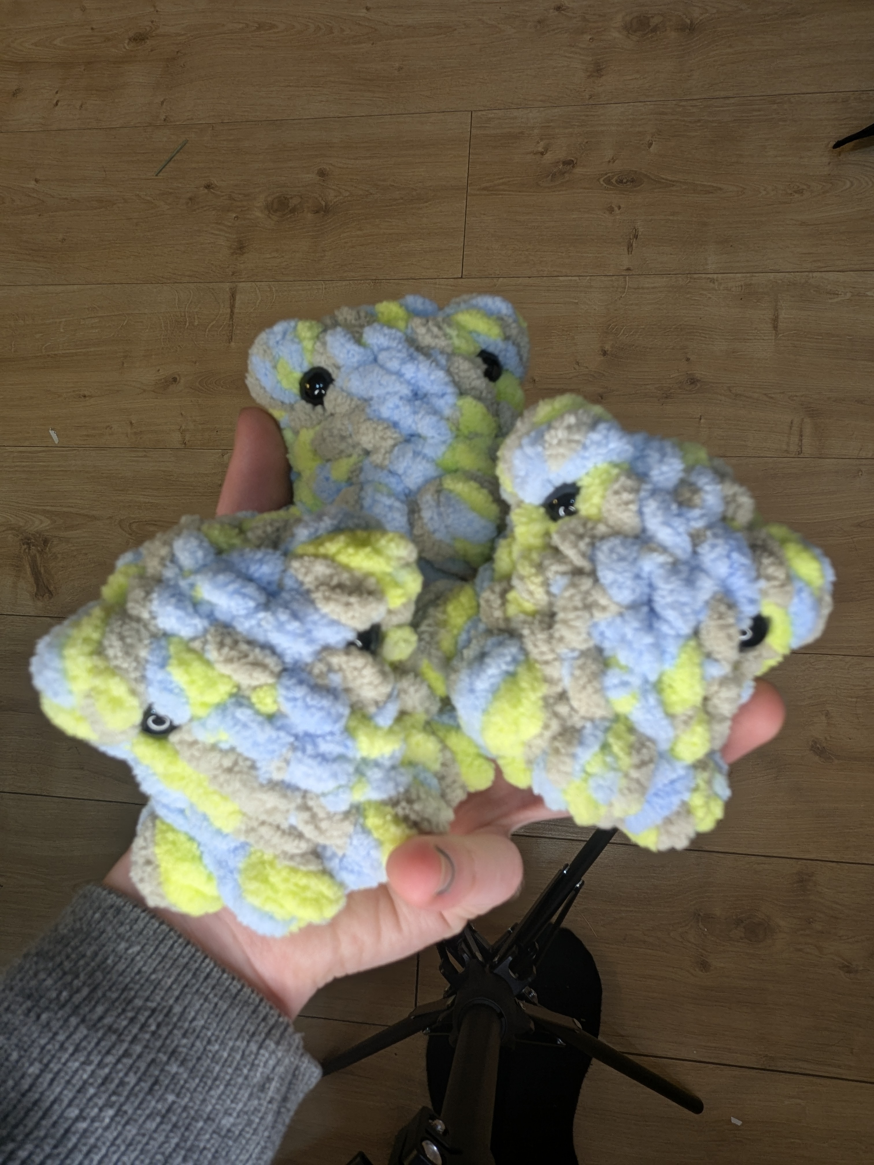 I would love to test these frogs! I’d use green bulky yarn and a 6.50mm hook, I would test the sitting frog or both if you need!