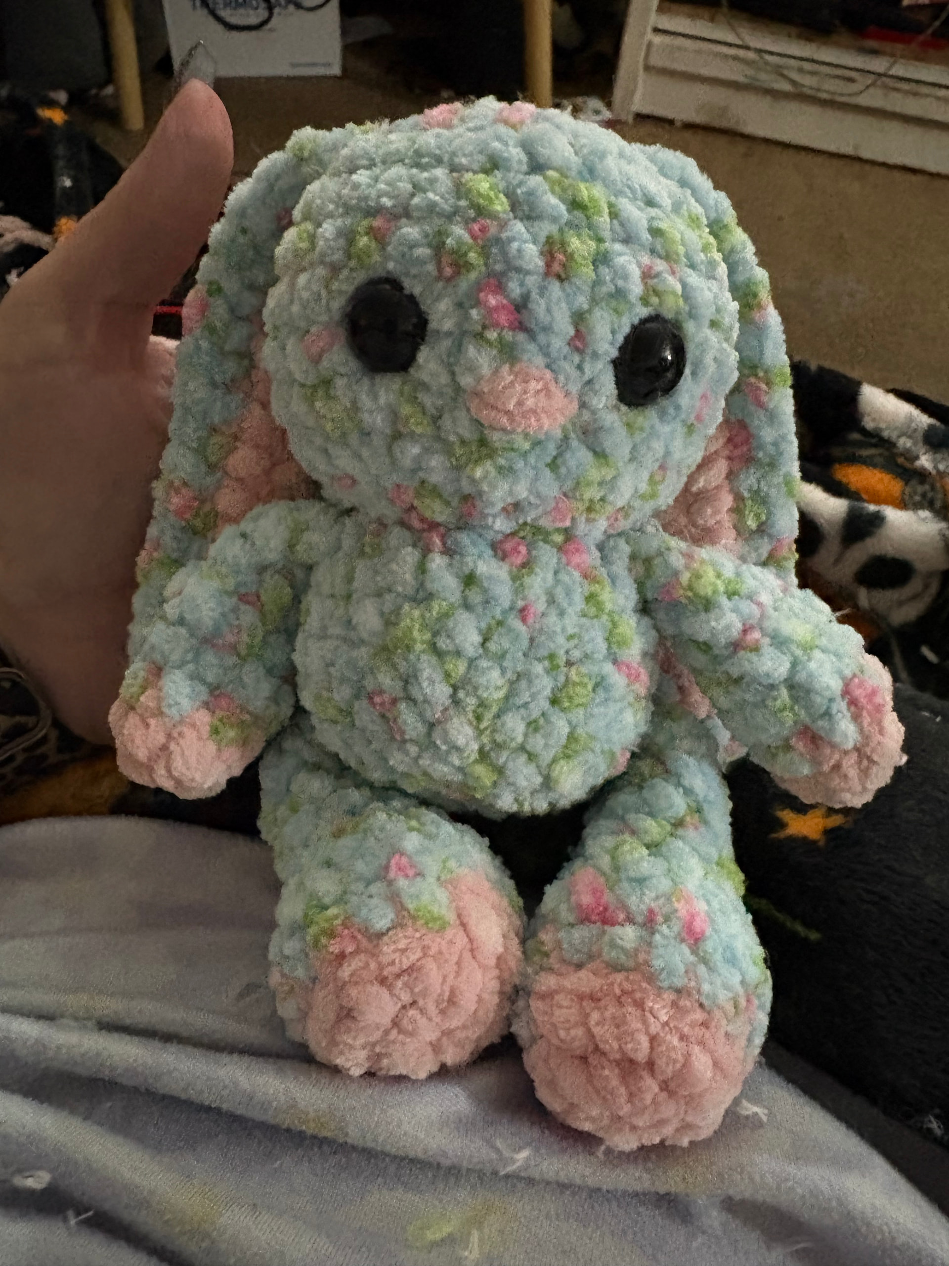 Comment below what yarn, hook size and colors you would use to make your bunny along with a bunny or flower emoji so I know you read the whole post!
