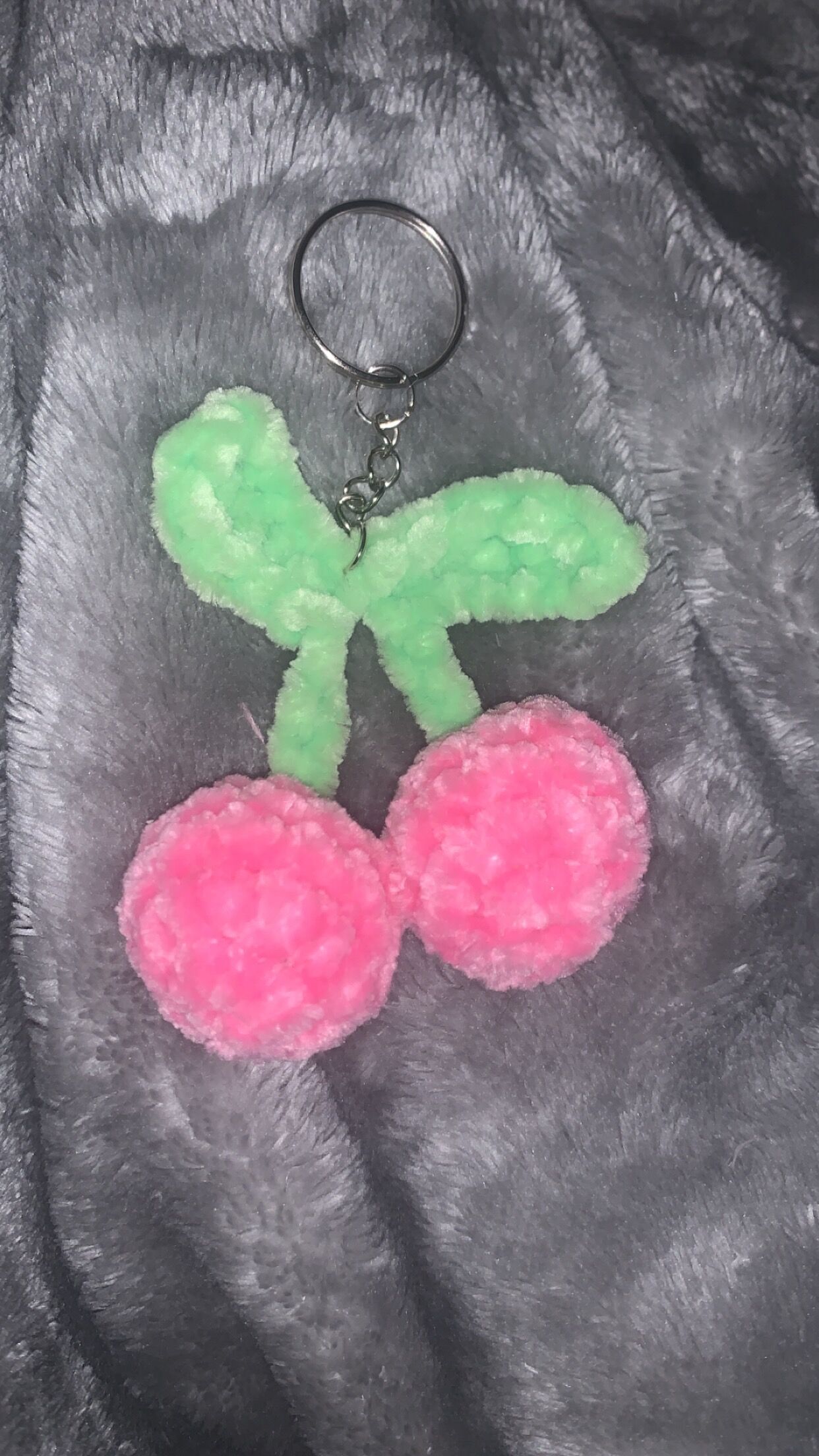 For the yarn I’d use size 6 chenille, with size 6 hook. I will be able to make it a keychain. My favorite fruit is honey dew. I love this key chain! Awhile back I made a cherry car hanger.