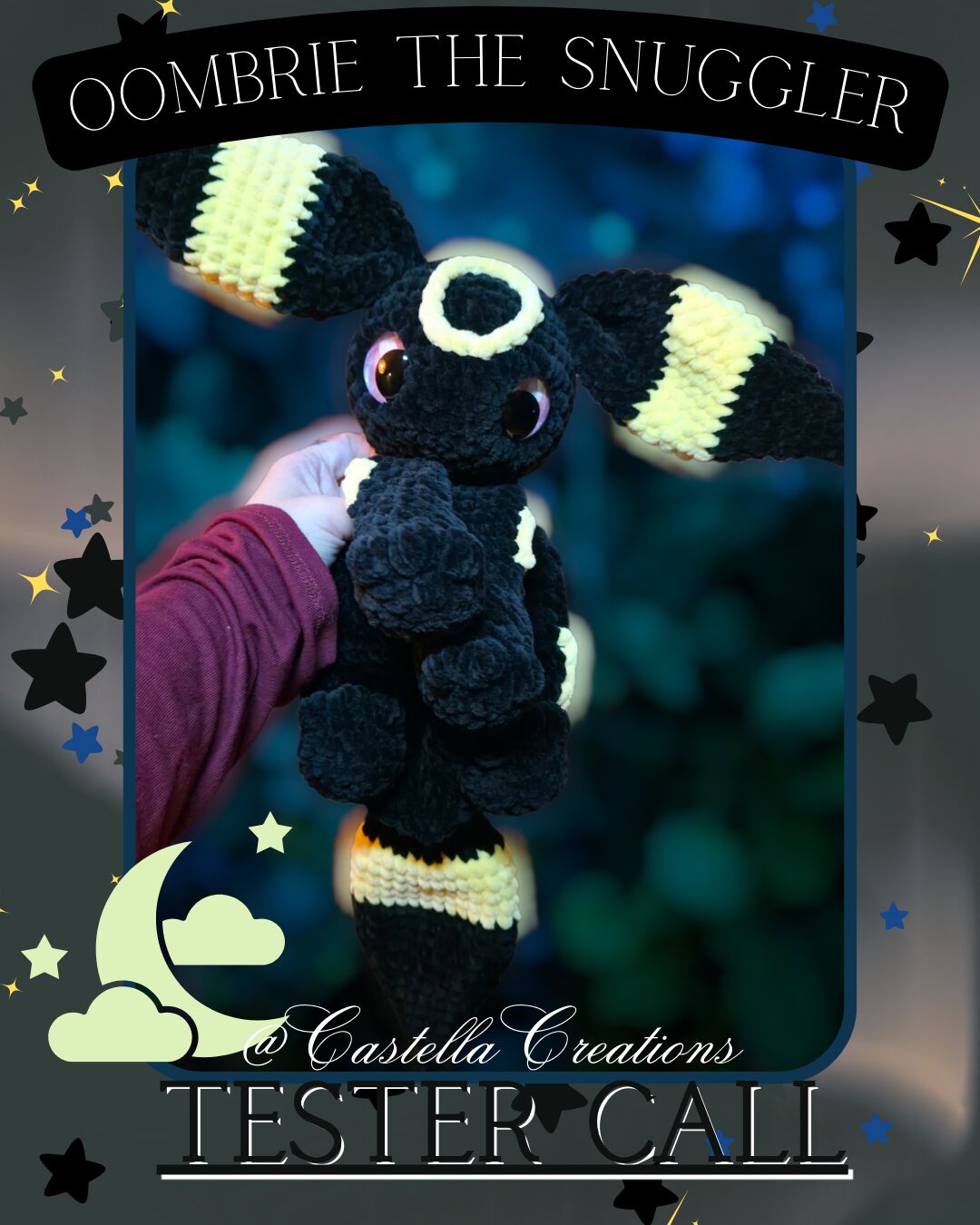 I would absolutely LOVEE to test this cutie!!! I would use either acrylic yarn or velvet yarn, with a 3.5mm/4mm hook!!! Id love to test the normal Oombreon!!!