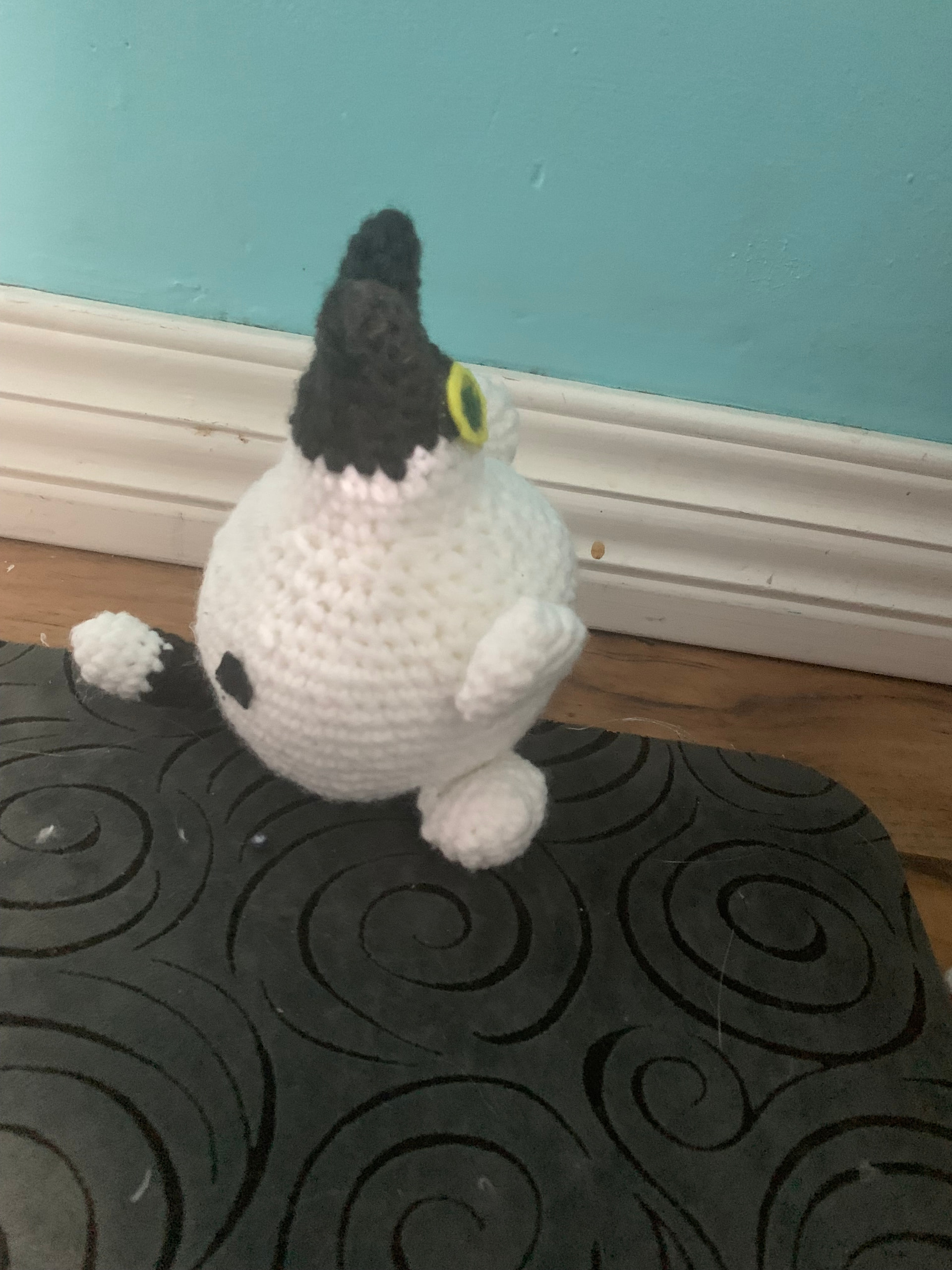 It’ll be in acrylic yarn with a 4mm hook, using safety eyes :3