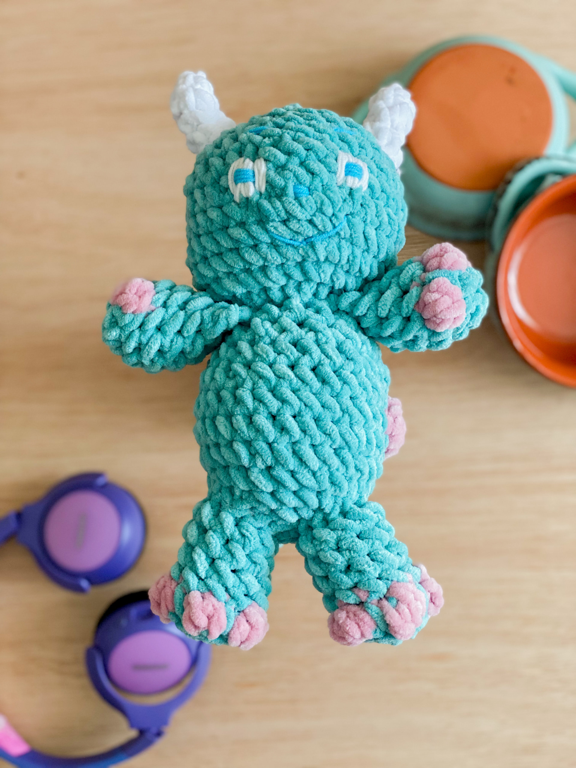 Additional Requirements: you will need a hook (I used 6mm), 3 different colours of yarn(I used YarnArt Dolce and YarnArt Jeans for sewing each part together as it is easier for me, safety eyes are not required but can be used and stuffing