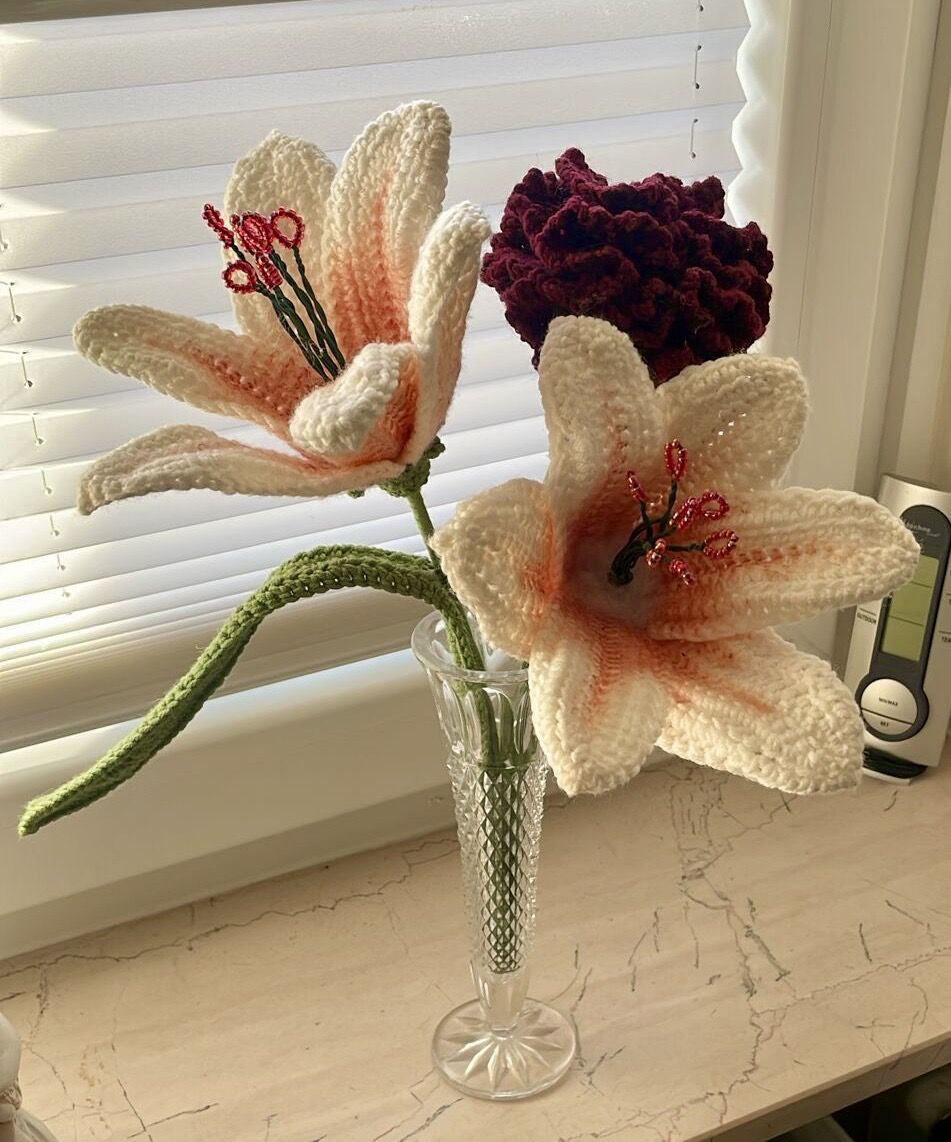 Yes the cover picture is mine. The one picture you shared was actually an inspo pic! I had come across it and thought it was neat. When I looked at the person’s profile they were posting pictures of much more obvious AI crochet flower pictures. I don’t like AI being used to fake a craft so I wanted to try and make it myself for people to actually make. I can provide more pictures to prove the picture is real and my project if you’d like. Thank you for asking!