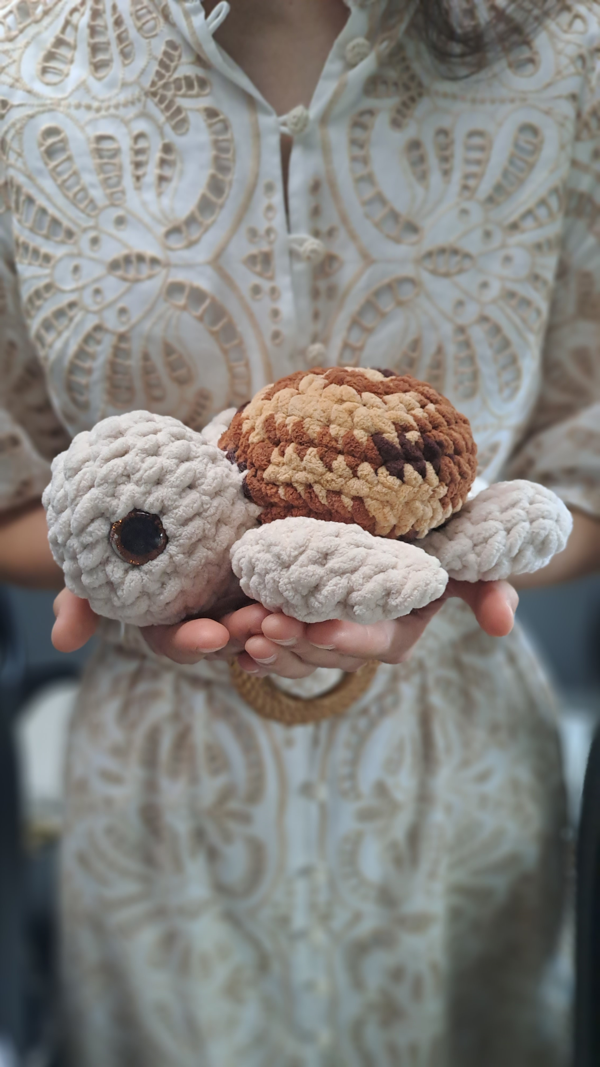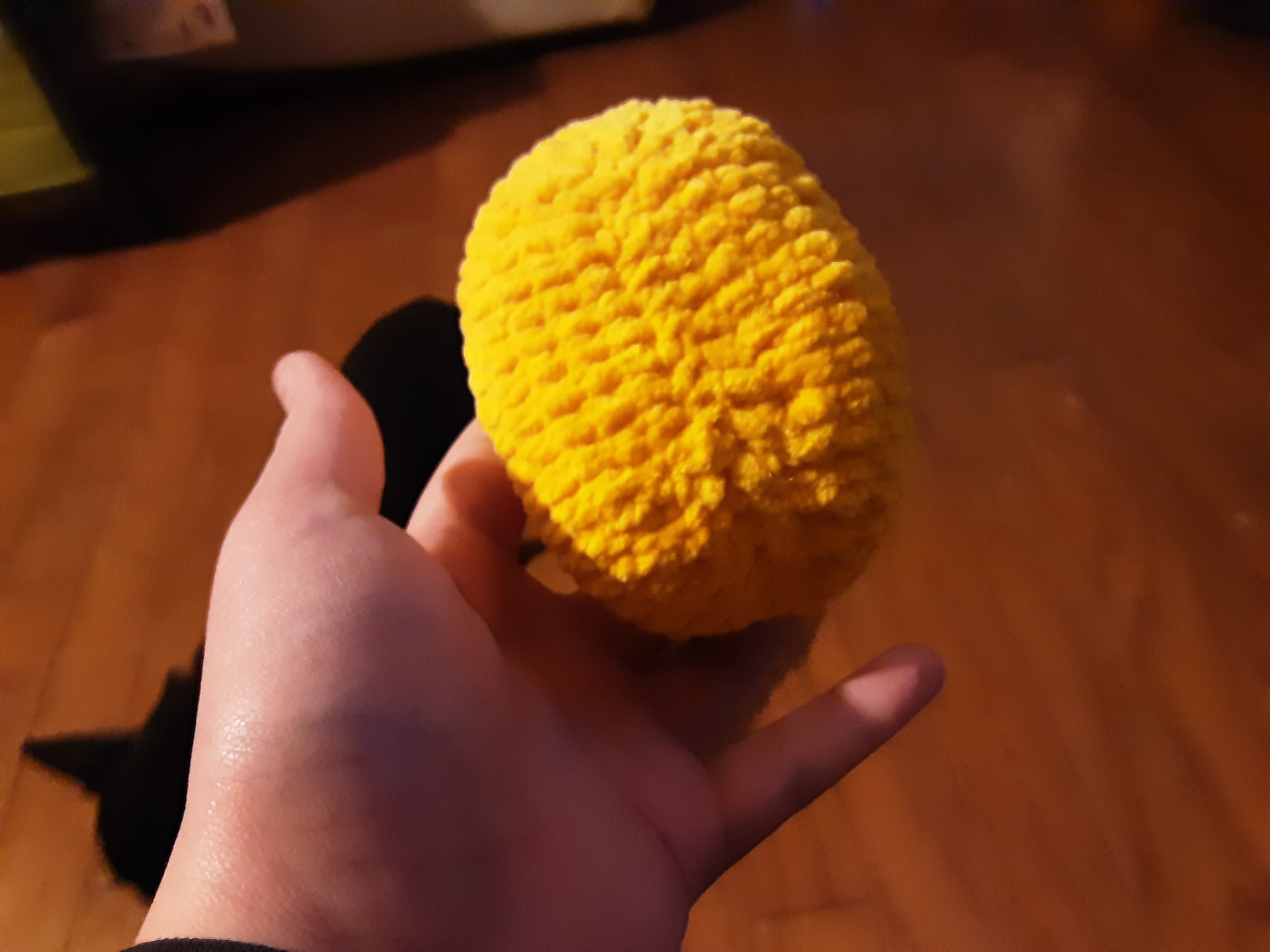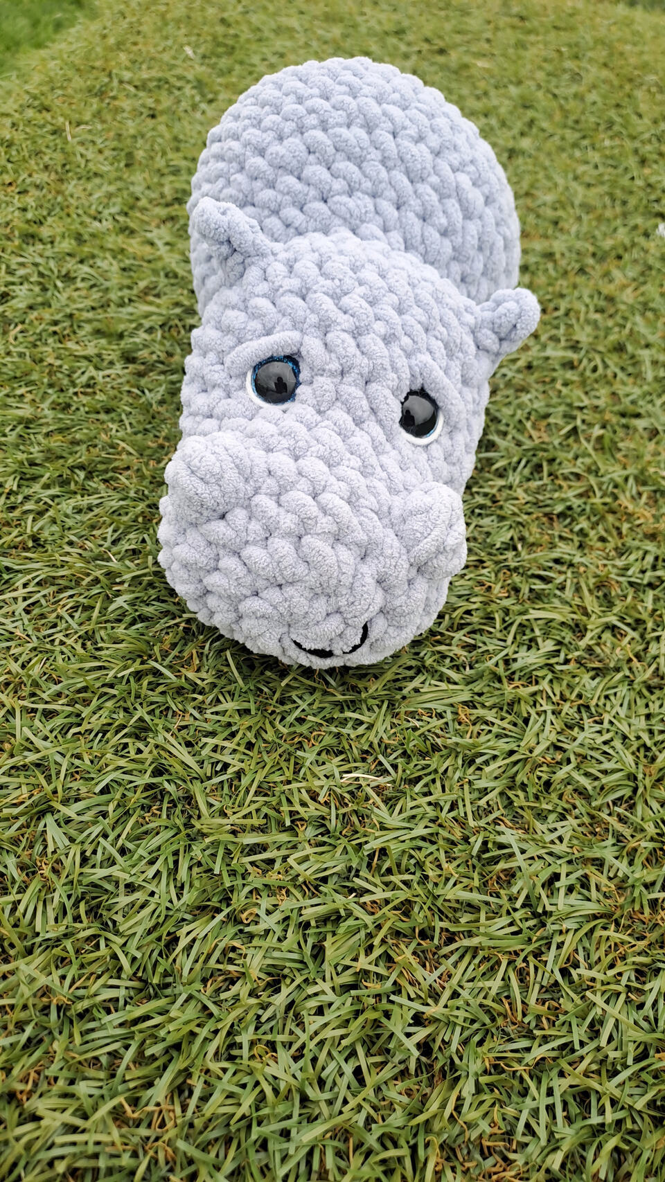 Hes soo cute! I’d use my own brand of chunky Chenille with a 6.50mm hook.