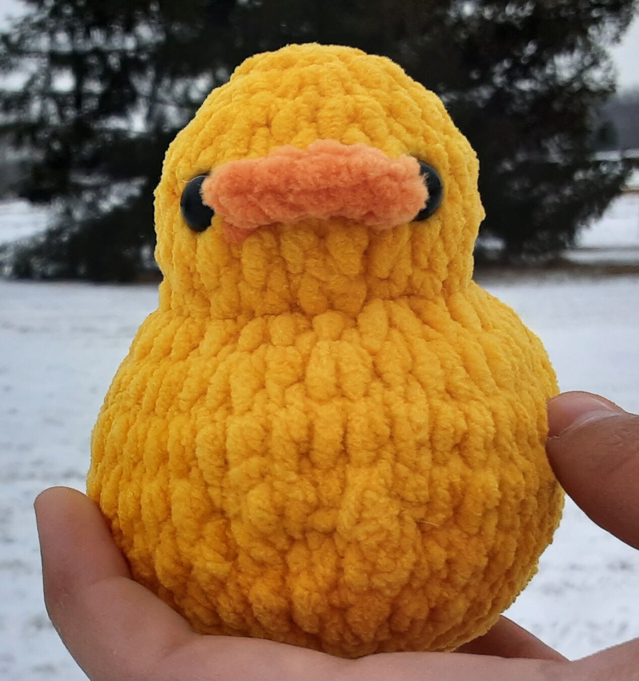 Heyy I don’t know exactly what its called because its old yarn from something else and I lost the label but its this really pretty light yellow yarn that I use a 5mm hook on. I really love this pattern bc I have a rubber duck collection.