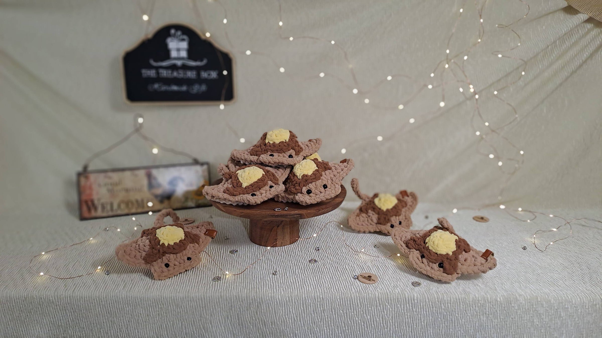 If chosen I would use velvet yarn, or 8ply acrylic yarn! It would be in a brown or tan with a 3mm hook!![]()