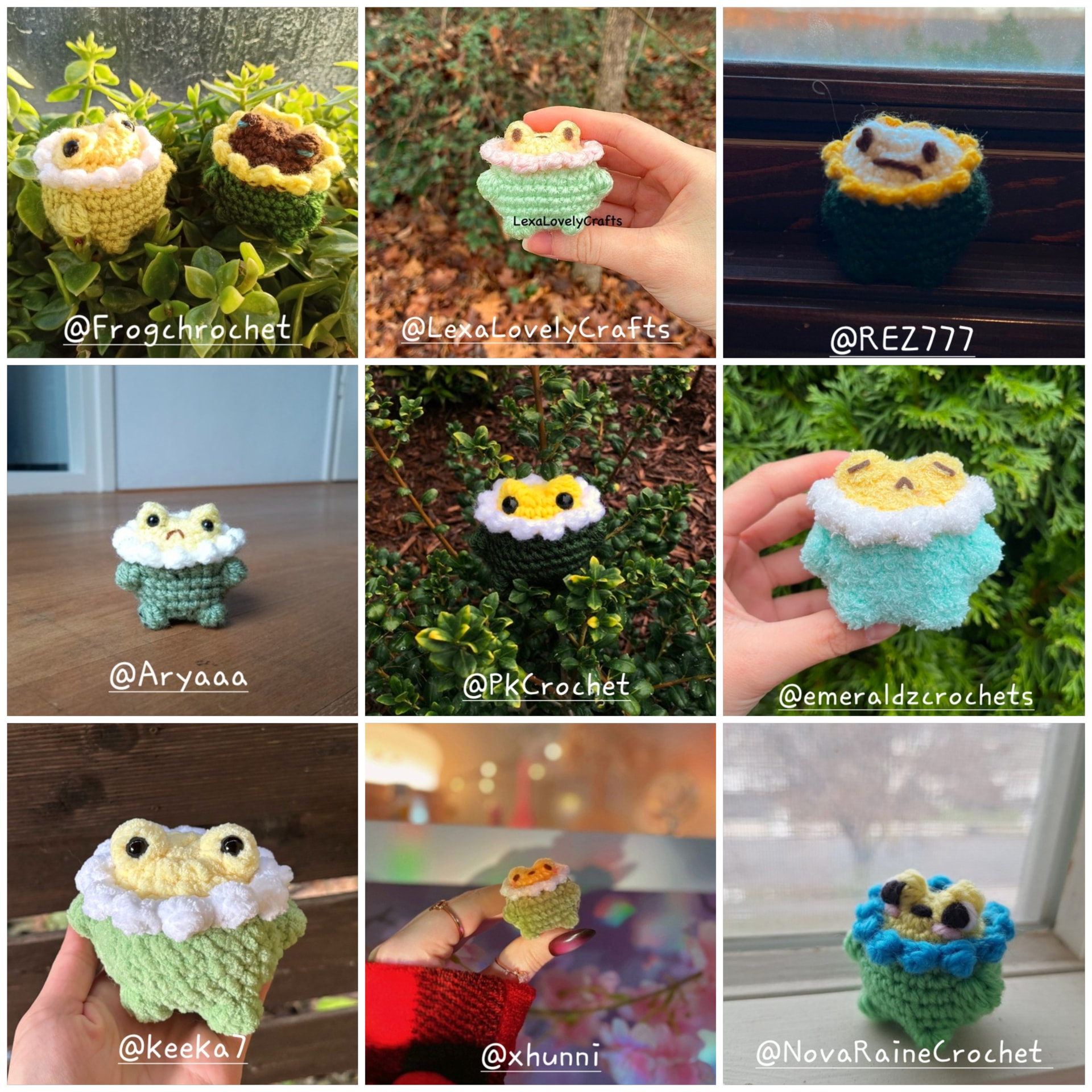 For an extra thank you I will be giving away 5 copies of my original Flower Frog pattern so that you guys can make a little flower froggy family ^^