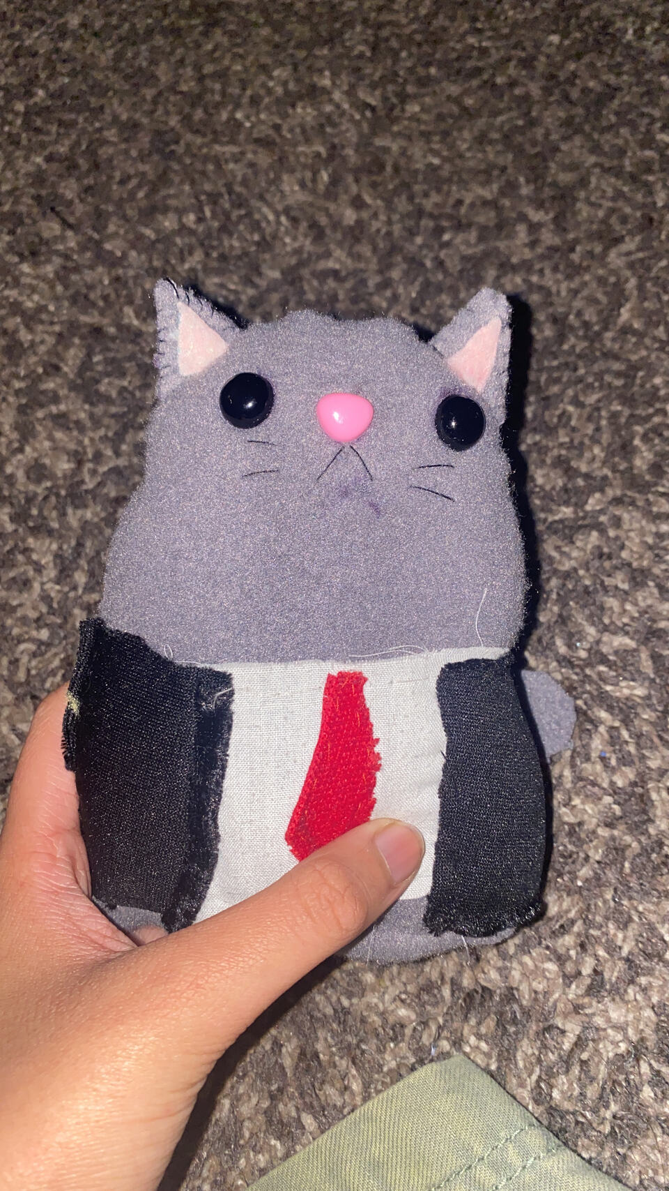 He’s not the best but I’m pretty proud of him! I really like his suit hehehe we don’t talk about how it’s ripping on the sides, he just ate one too many doughnuts it’s ok his name is Purrlock Holmes :D