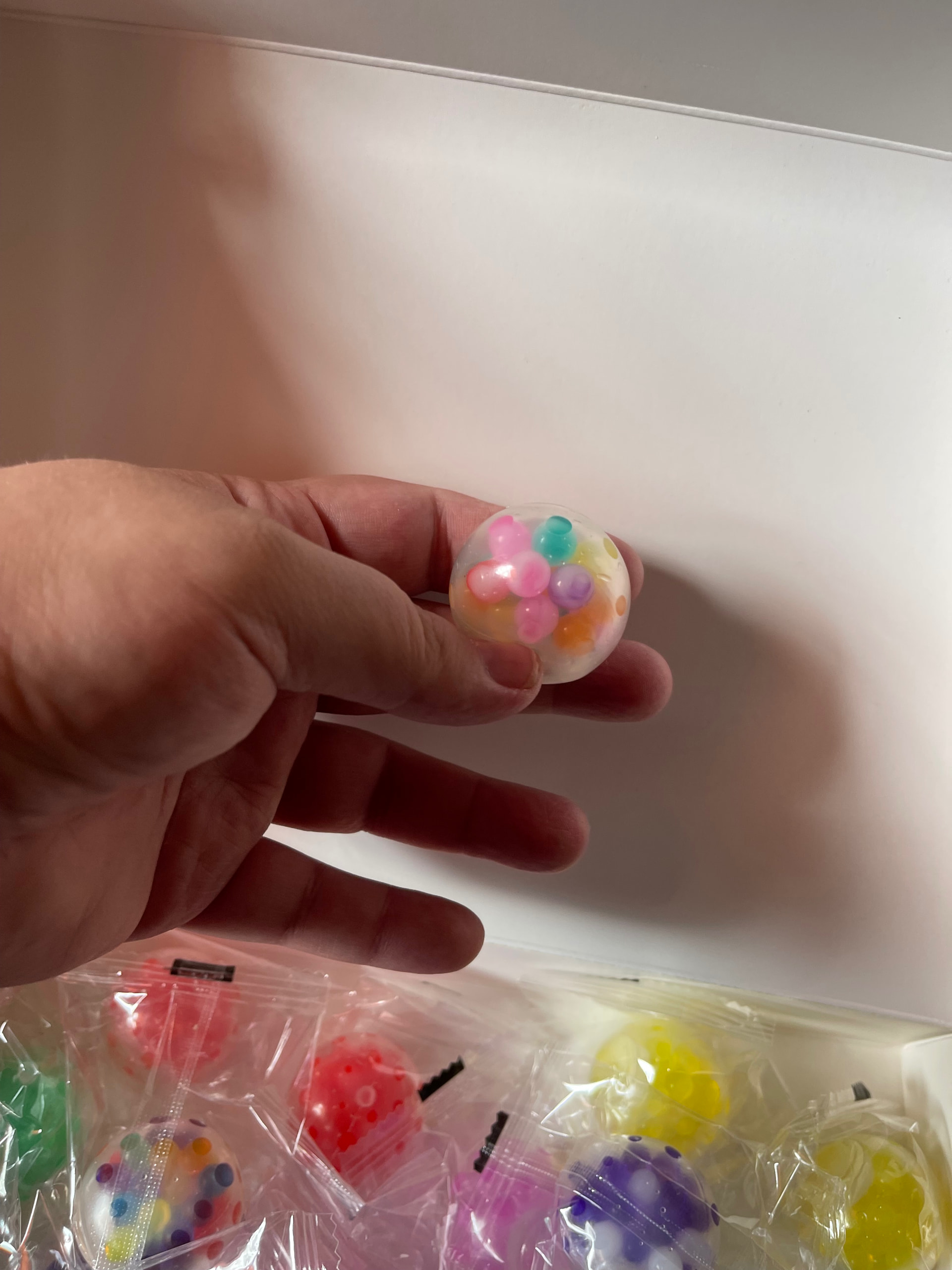 So I ordered and for the price what I thought was a box of normal palm sized squishy orbeez type balls. They are tiny, like quarter machine bouncy ball tiny! What do I do with them? Should I try to design a tiny squeeze ball creature just to use these silly teeny things up? I was thinking they could be eyes but I’m not sure how to make it so you can squeeze them both at once, so the crocheted part isn’t so tiny, it would just be the space for the ‘eye’ to go?