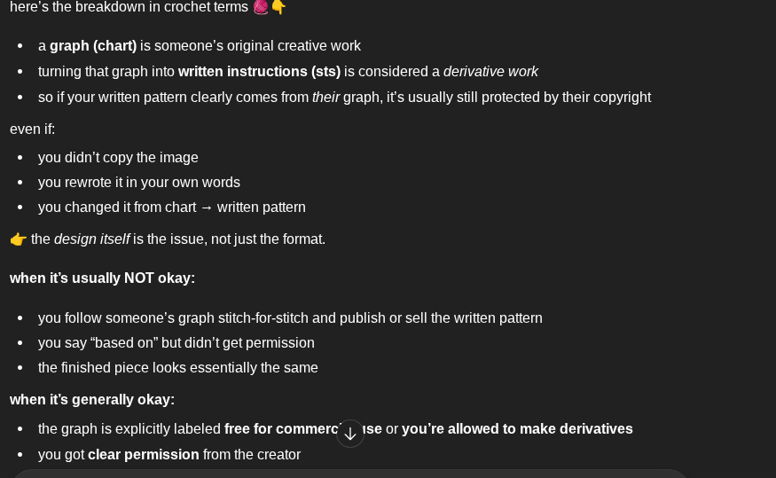 yea what I’m saying is you can find a graph and then crochet it and put in sts and call it your own, because it isn’t your graph art