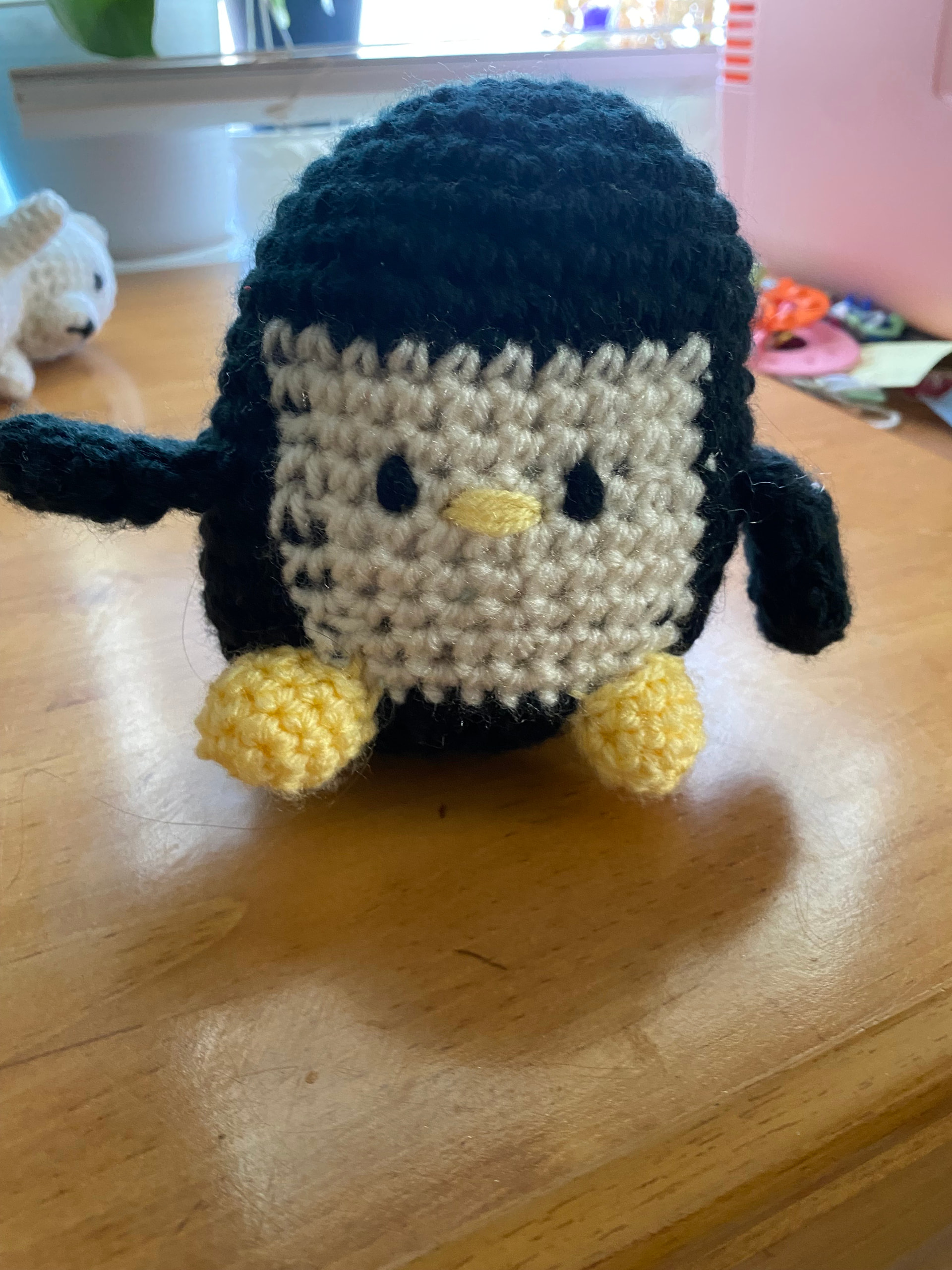 - Sitting w/ sewn on stubby legs (penguin)