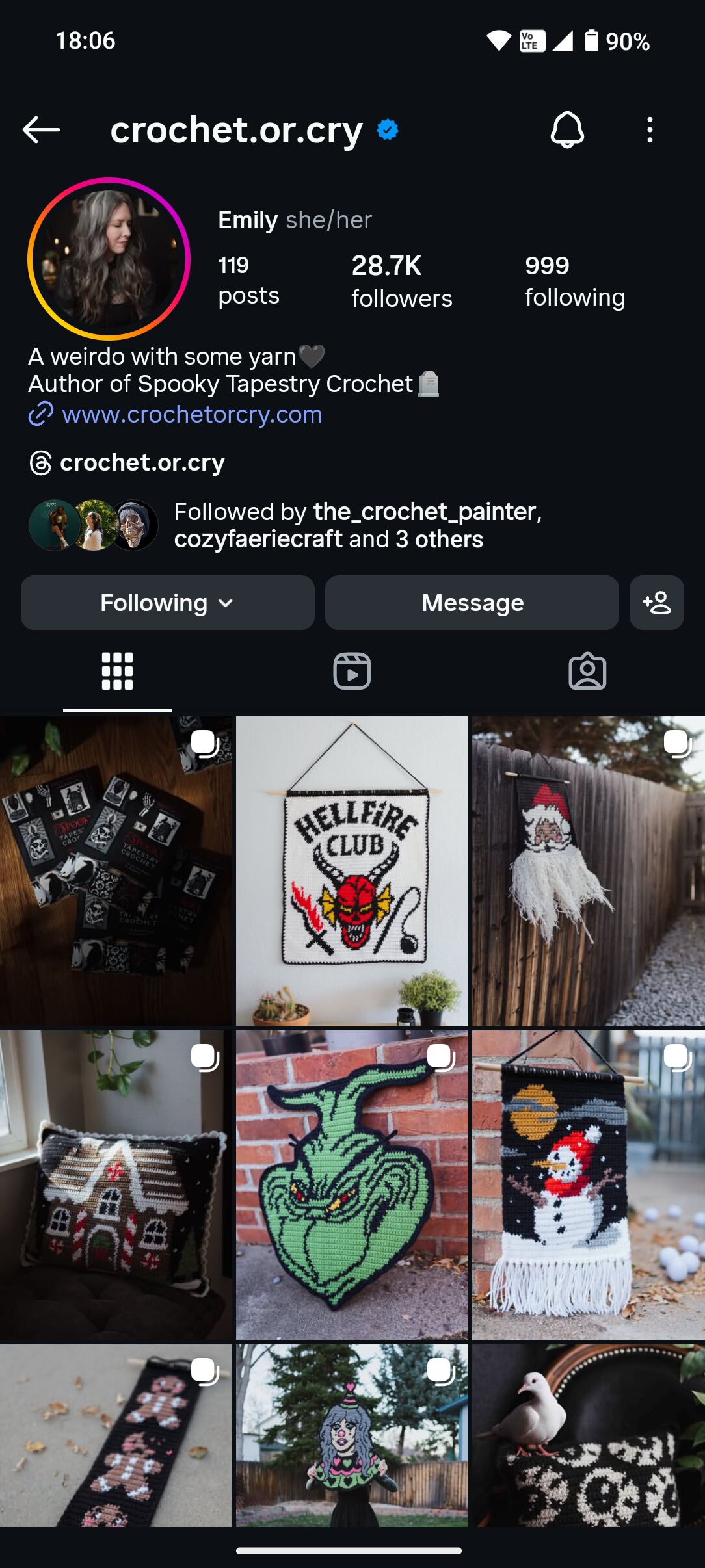 Any tapestry by crochet or cry! She has a lot of goth/emo inspired patterns