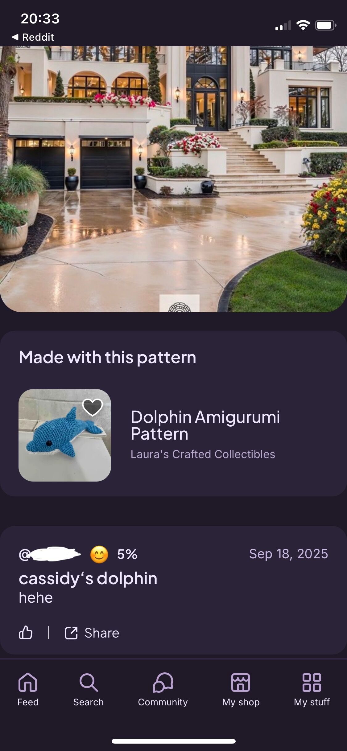 I just received the strangest journal of my dolphin’s free crochet pattern. All I have is an image of a mansion( I believe), and even the description doesn’t say anything about the pattern. Just a laugh!