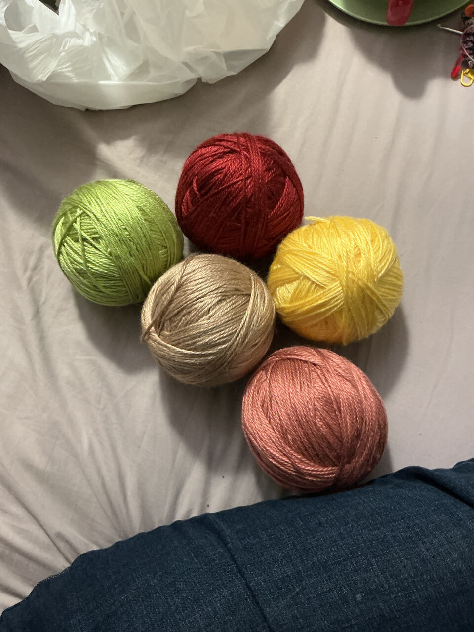 So I got this yarn for a temp blanket. I thought it would be a good idea to use one yarn line. But the yarn is really thin and separates easily. I have like 7 balls of it. Here’s some of the colors.