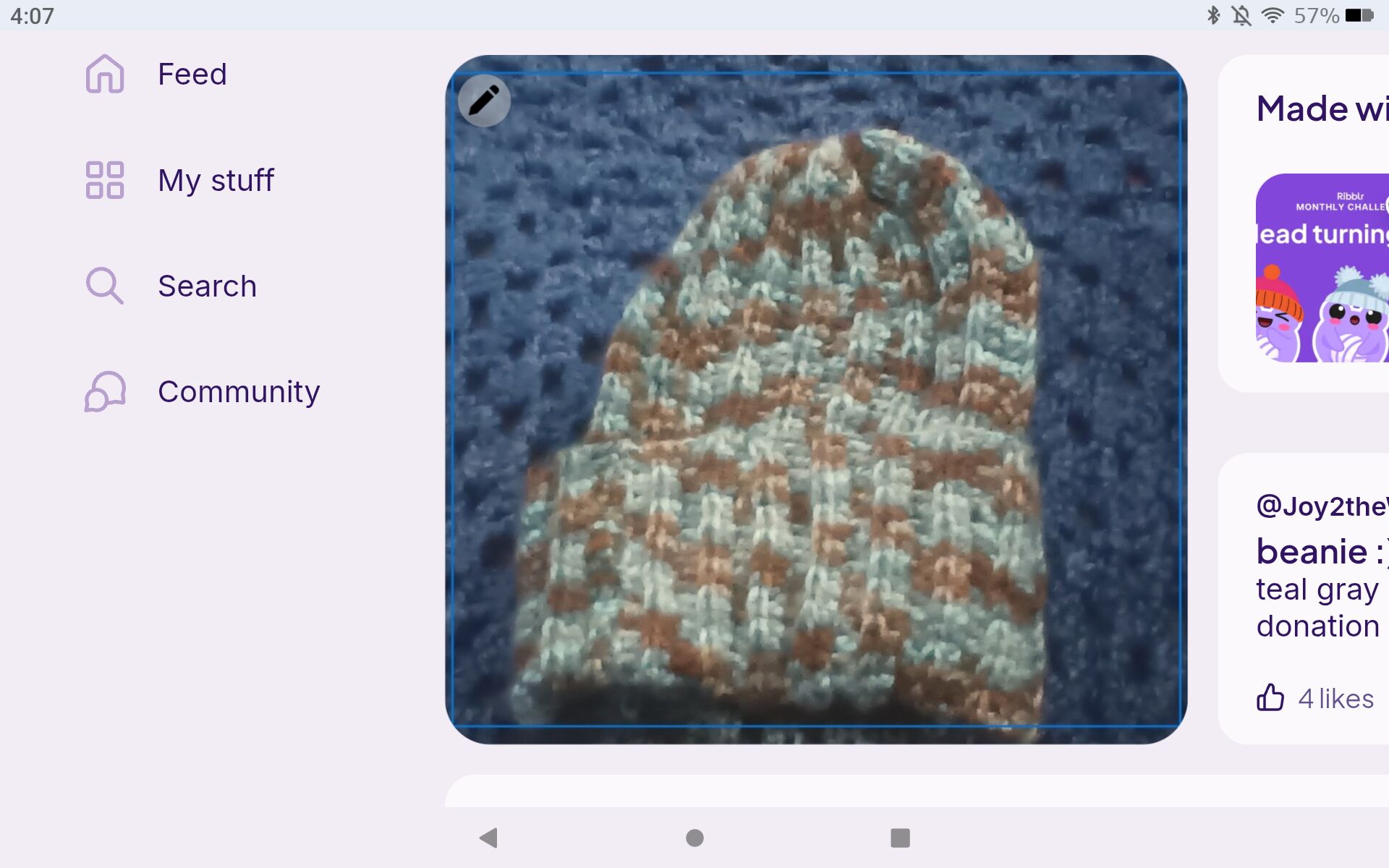 final hat “sigh” i was looking for a sweater in a storage bin and i found this. thanks to the whole Ribblr team for making these challenges possible :)