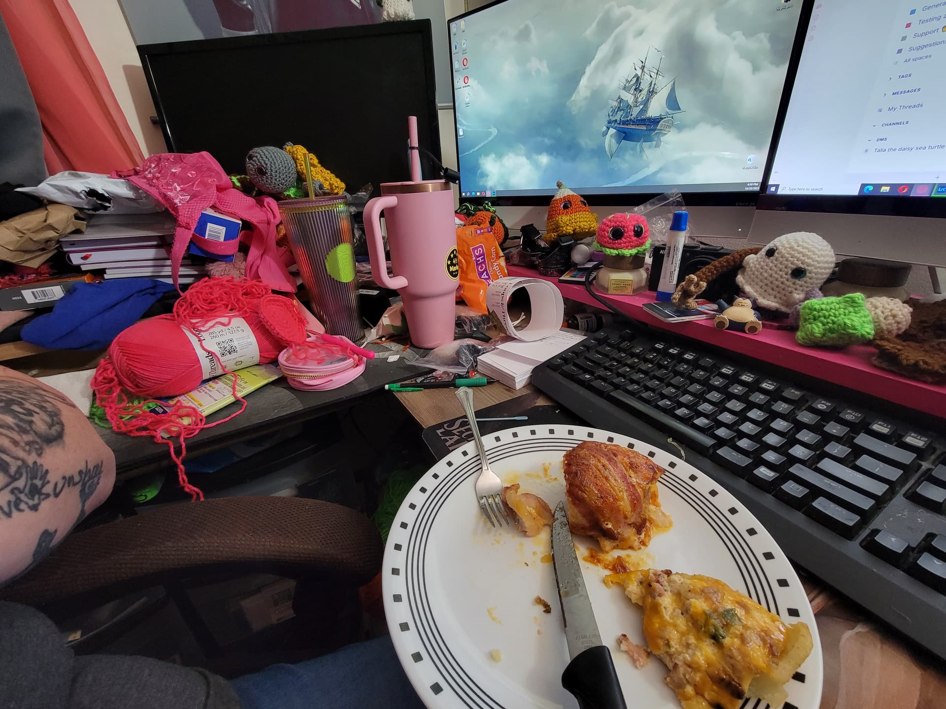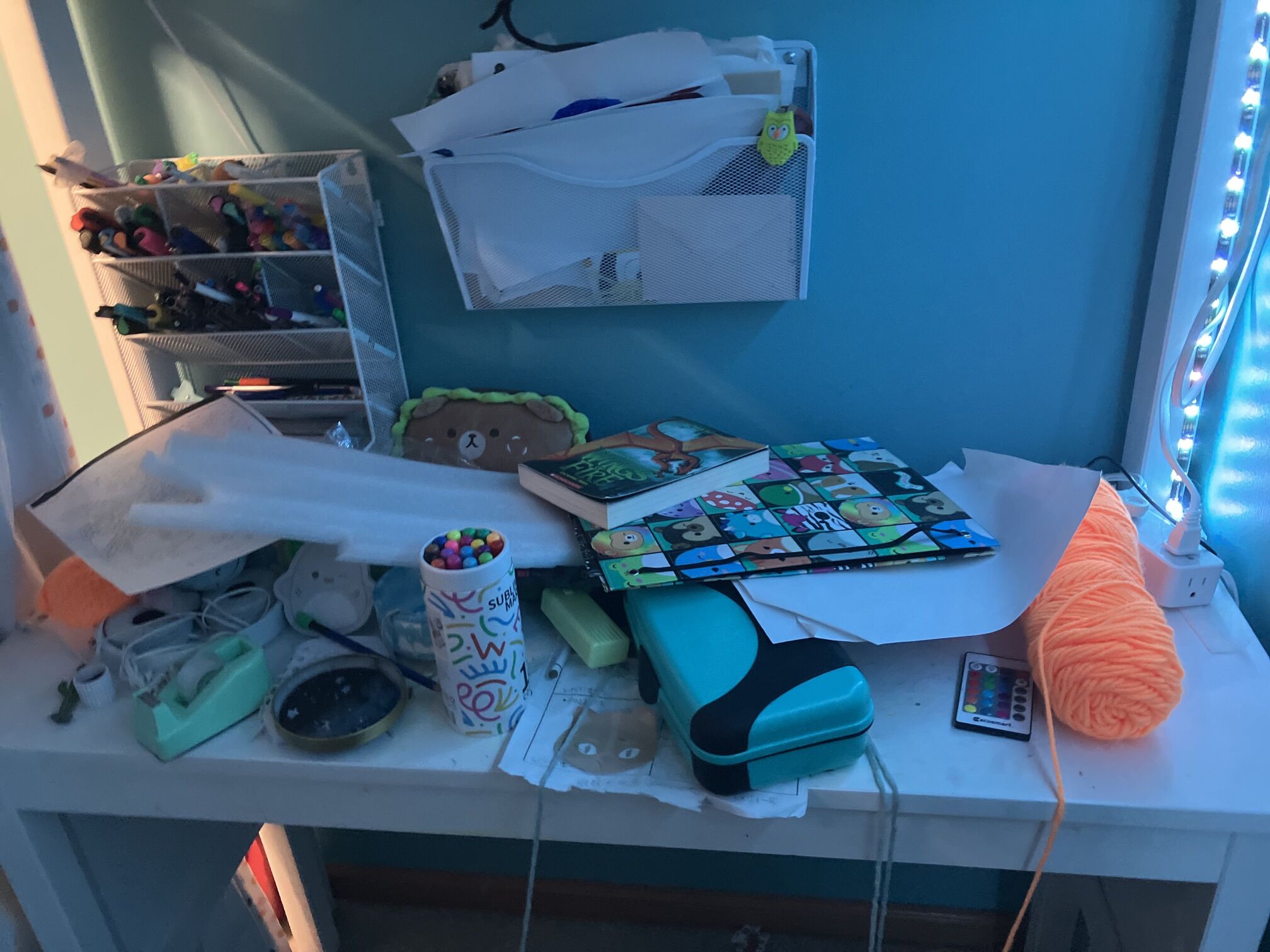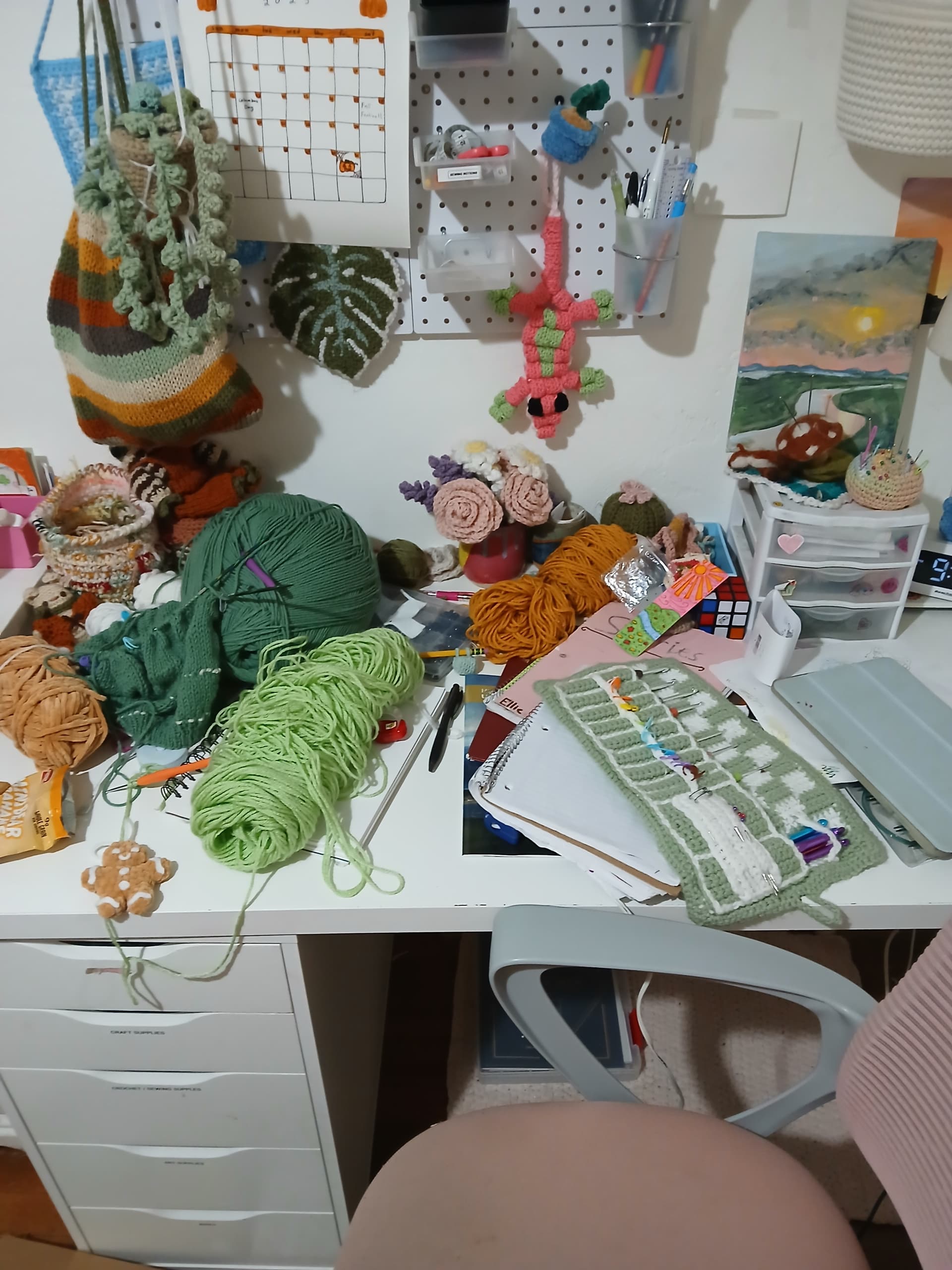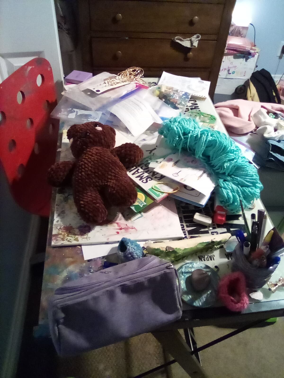 My desk is basically in a constant rotation of a mess of wips, craft supplies, and school stuff lol
