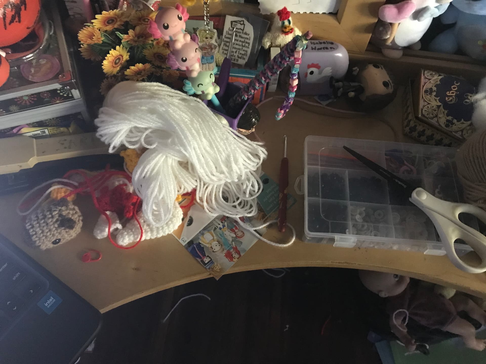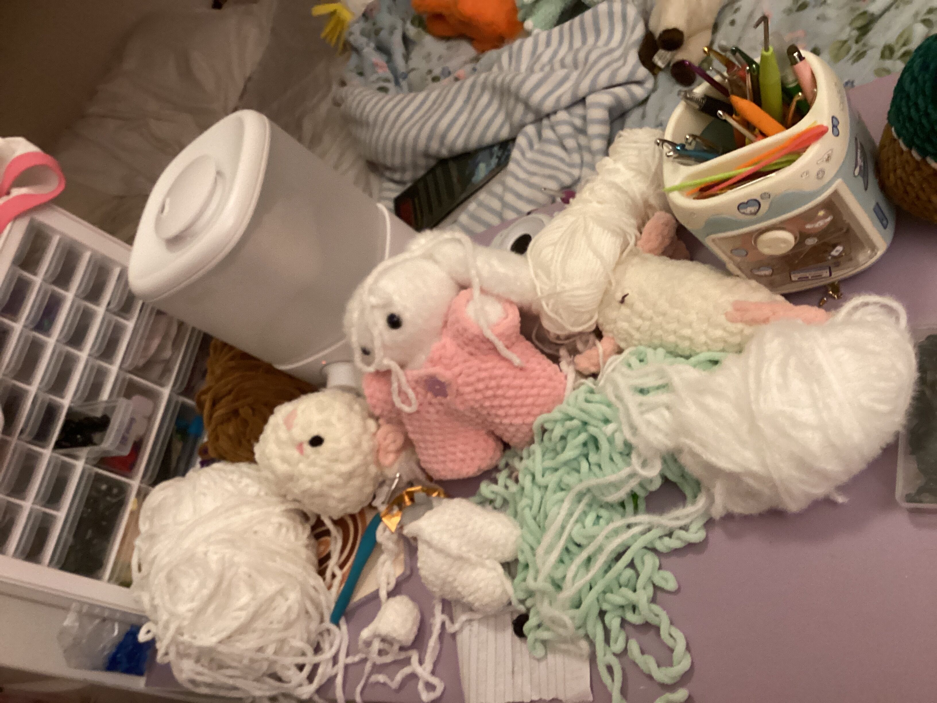#1 is my crochet workspace, as you can see there’s a lot of yarn… i recently removed like 10 skeins from there-