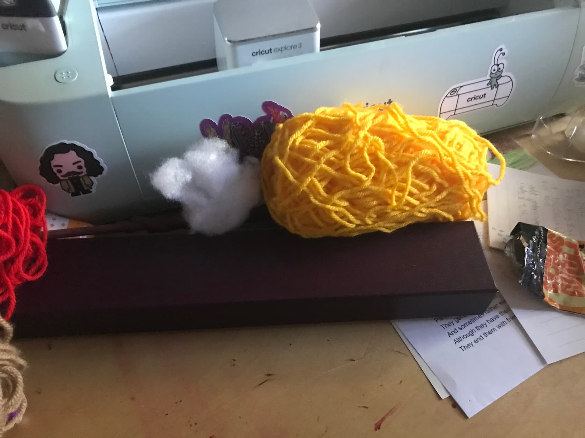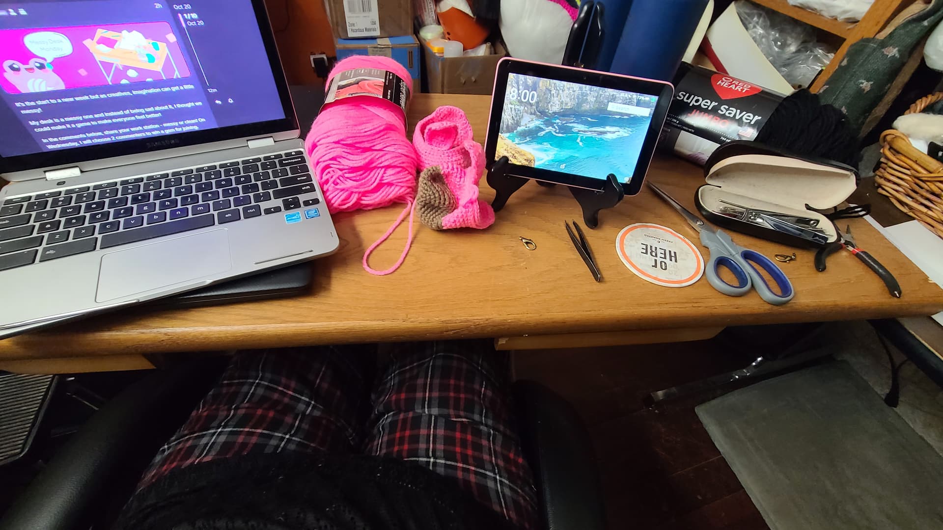 I also have not a single thing of yarn on my desk ribbot would be disappointed in me sighs
