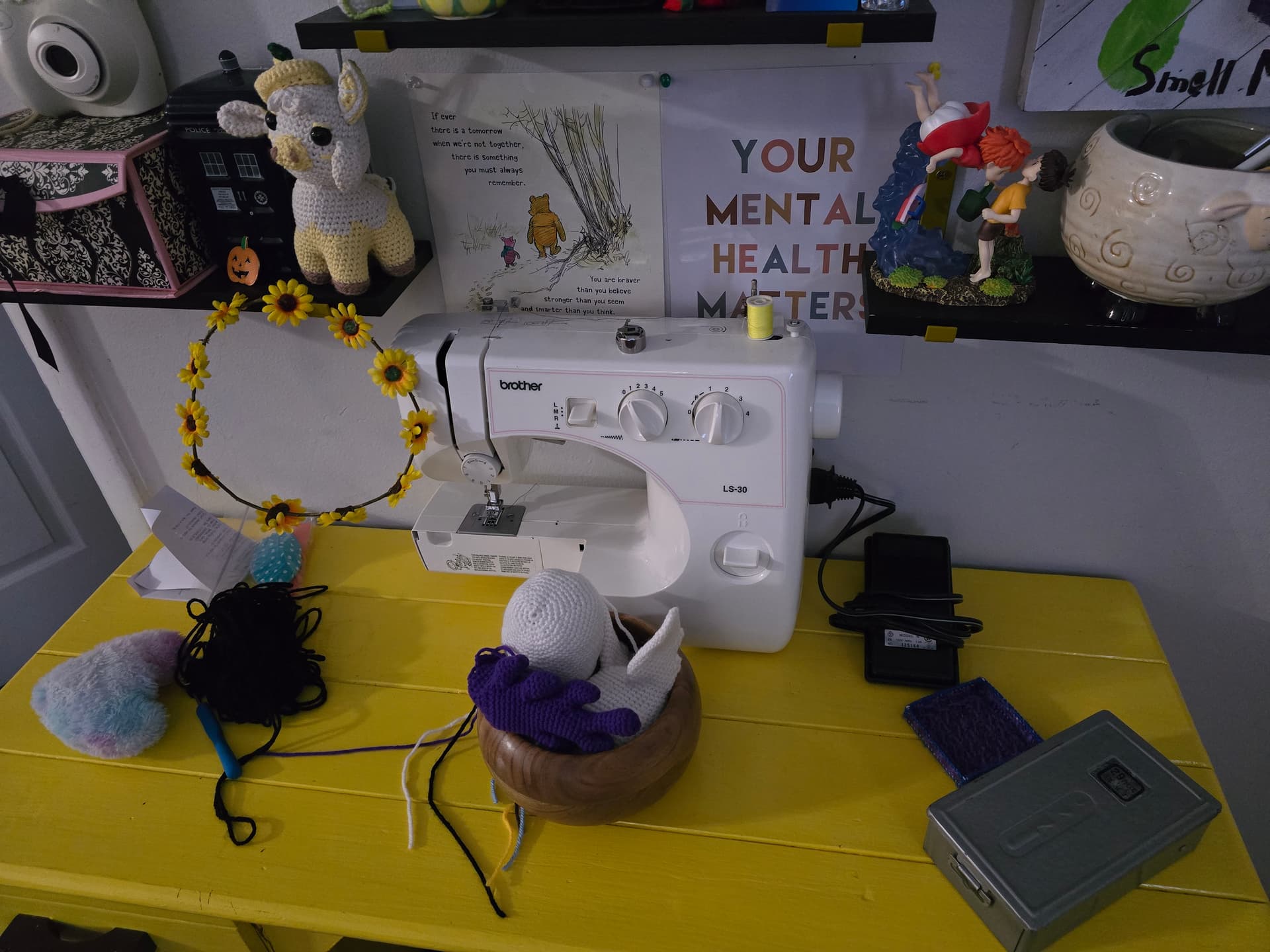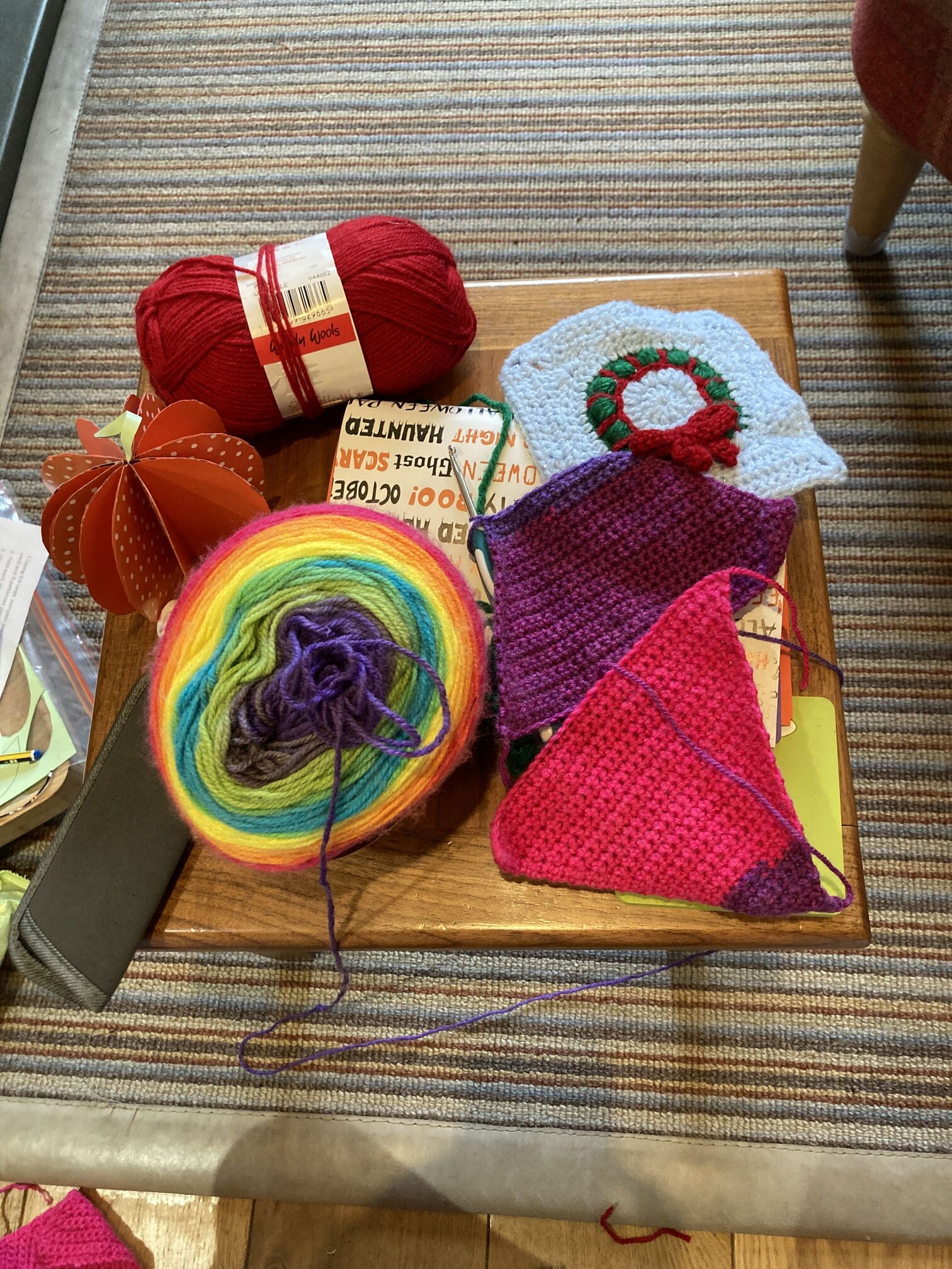 I am on holiday in the Lake District rn so my desk is basically everywhere! This is mostly where I place down my yarn rn!!!
