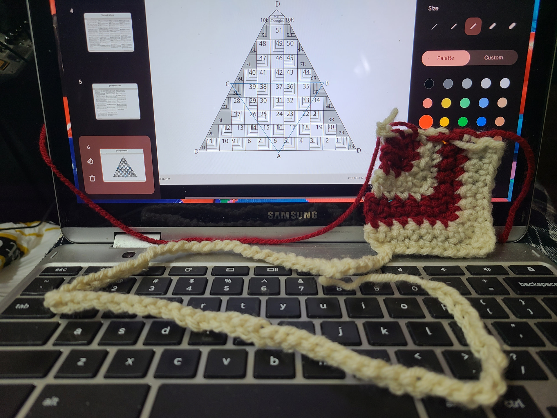 I was trying to follow Yarnspiration’s mosaic triangle pillow pattern, but it’s… not working. I don’t know what’s wrong, but I’ve just given up (long story short, 17sc does not go into 100ch 11 times) and I’m hoping that you guys might be able to help me find a suitable pattern to replace it with.