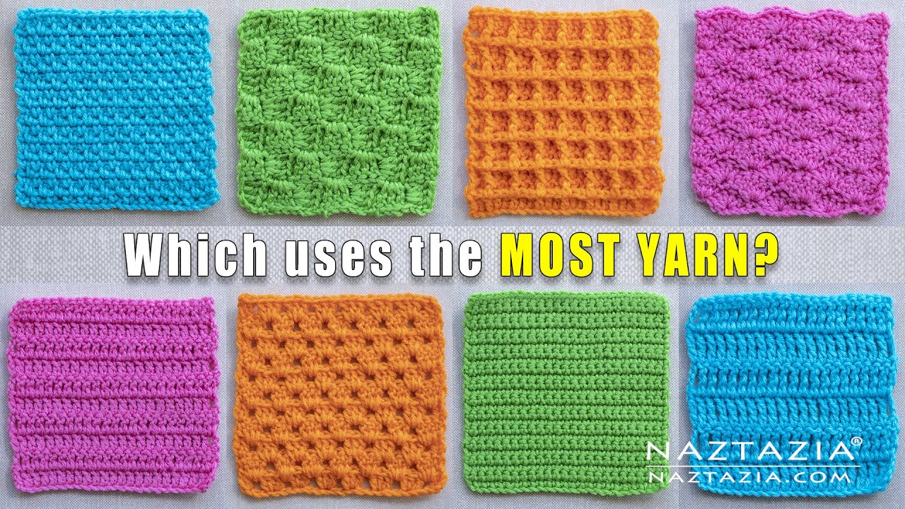 ) But, I want to use it wisely. So I did a search for the stitches that use the most yarn and found this video. Maybe you could recreate it with your favorite stitches. Screenshot also with the results of those tested. Thought it might be useful for you(s) also.