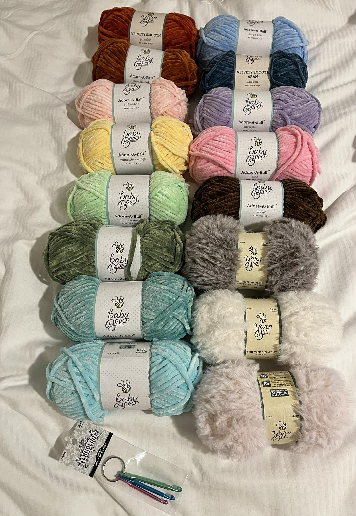 Just went to Hobby Lobby for my first time! (They don’t have them where I live) I may have bought some yarn. I planned on walking out of the store with 1 ball of yarn but well… I may have walked out with 16 balls of yarn and a crochet hook keychain. This was the cheapest yarn I’ve ever bought! It was $68.00usd which at michaels would have bought me about 7 or 8 balls of yarn.