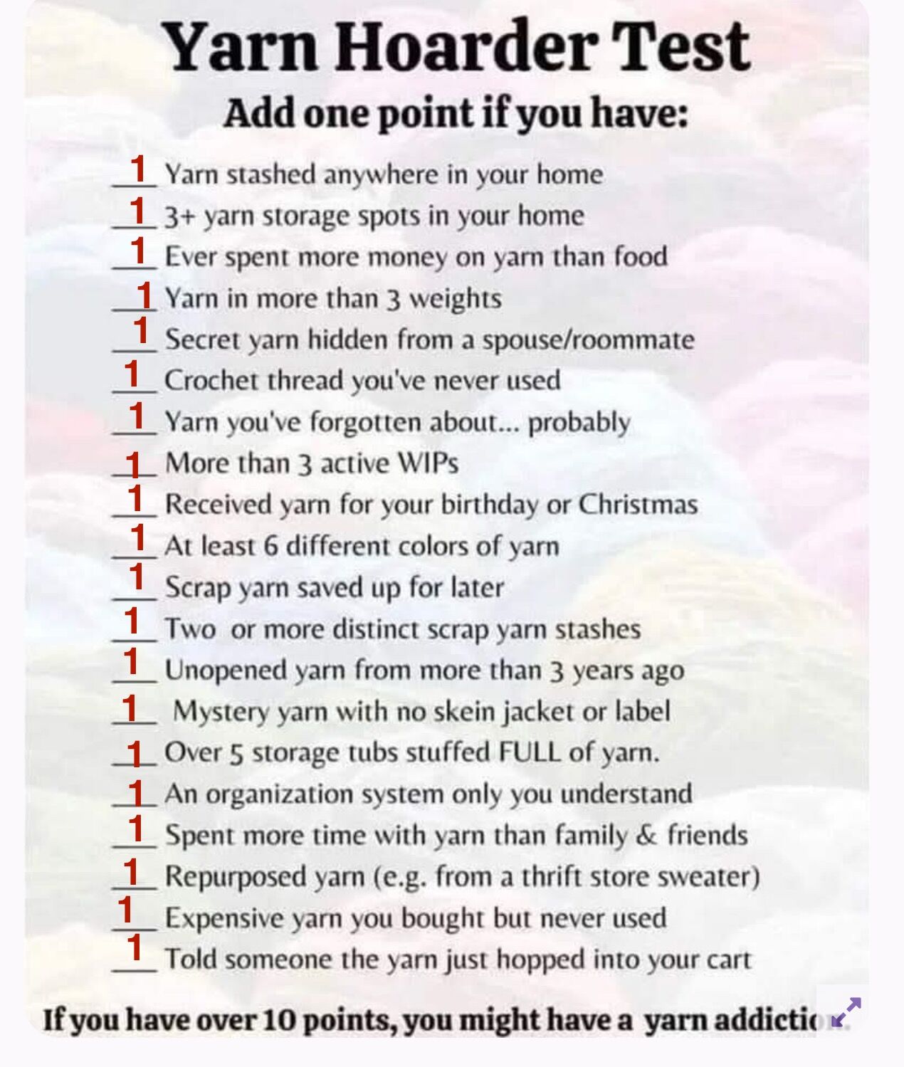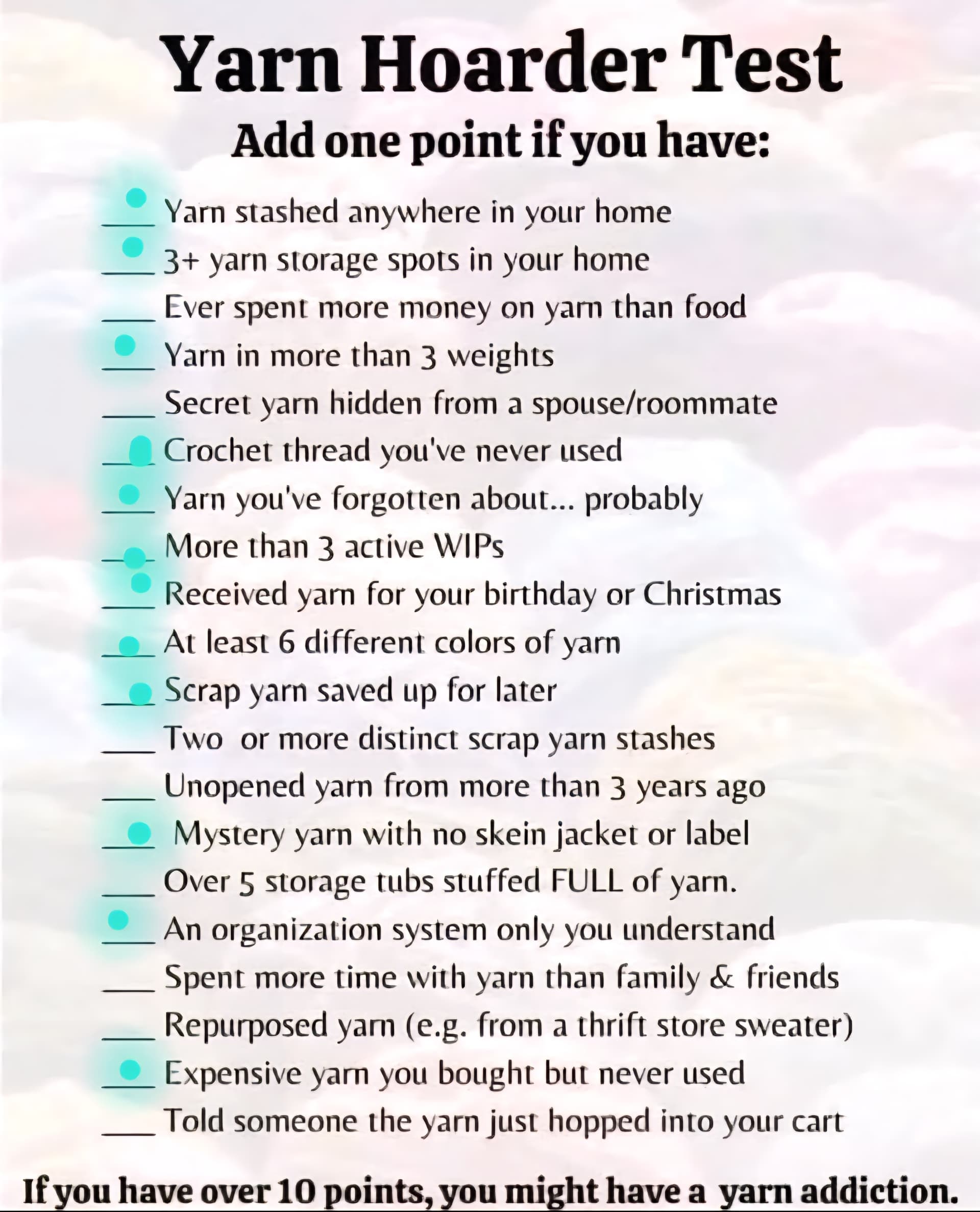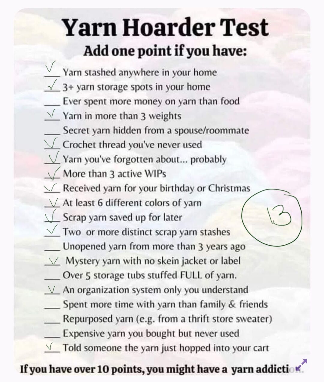 14 out of 20 i might be a yarn hoarder :)