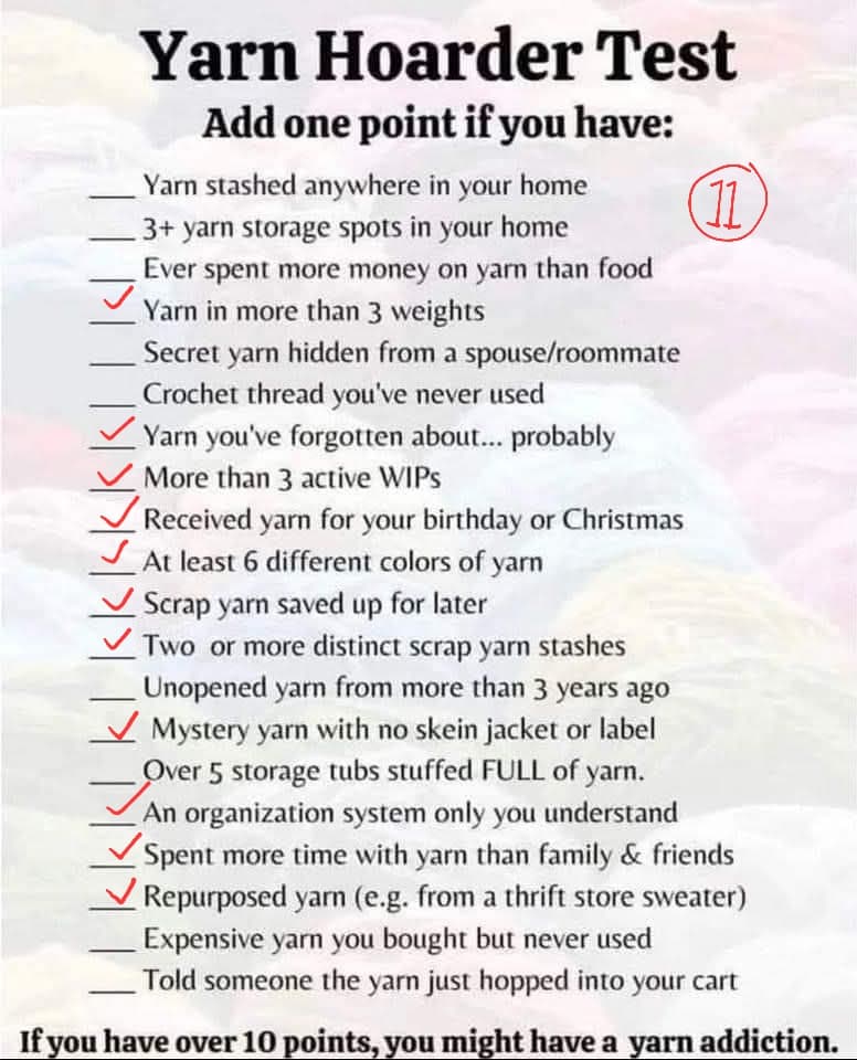 I DON’T HAVE A YARN ADDICTION YET! I’m safe for now. Wait a minute- I forgot to mark one…