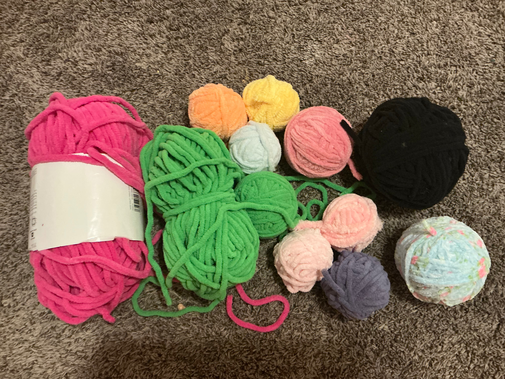 With the posh purl and the chenille yarn scraps you could use studiopheobe22’s free dino pattern? The pattern is on instagram but you can just access it by searching it up and pressing on the link.