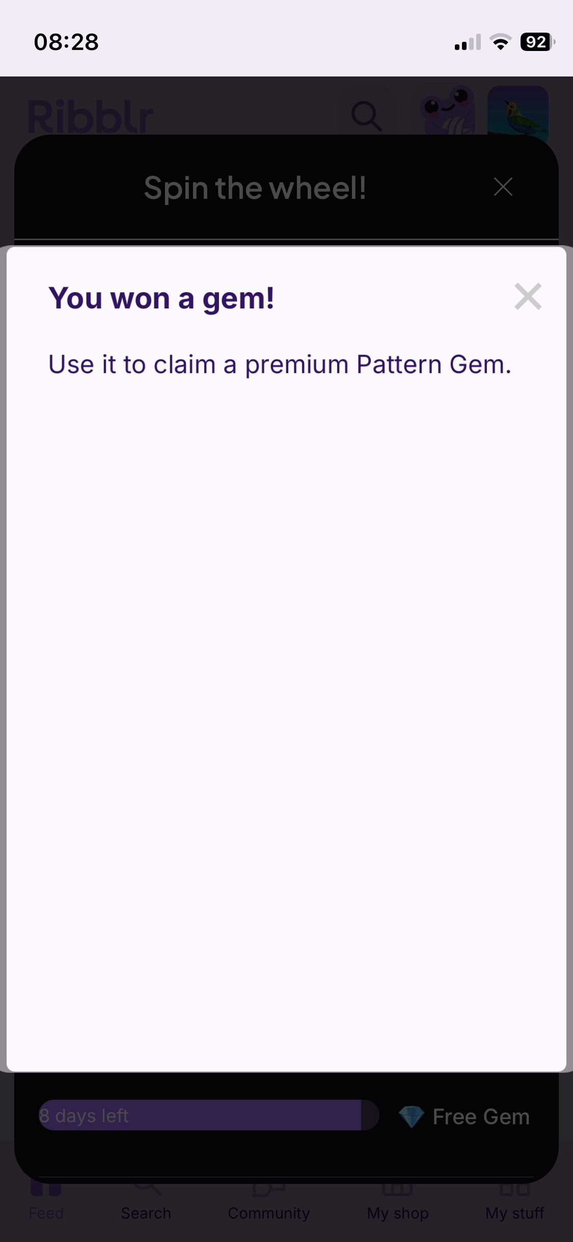 Hi y’all I finally got the gem on spin the wheel after waiting 9 months