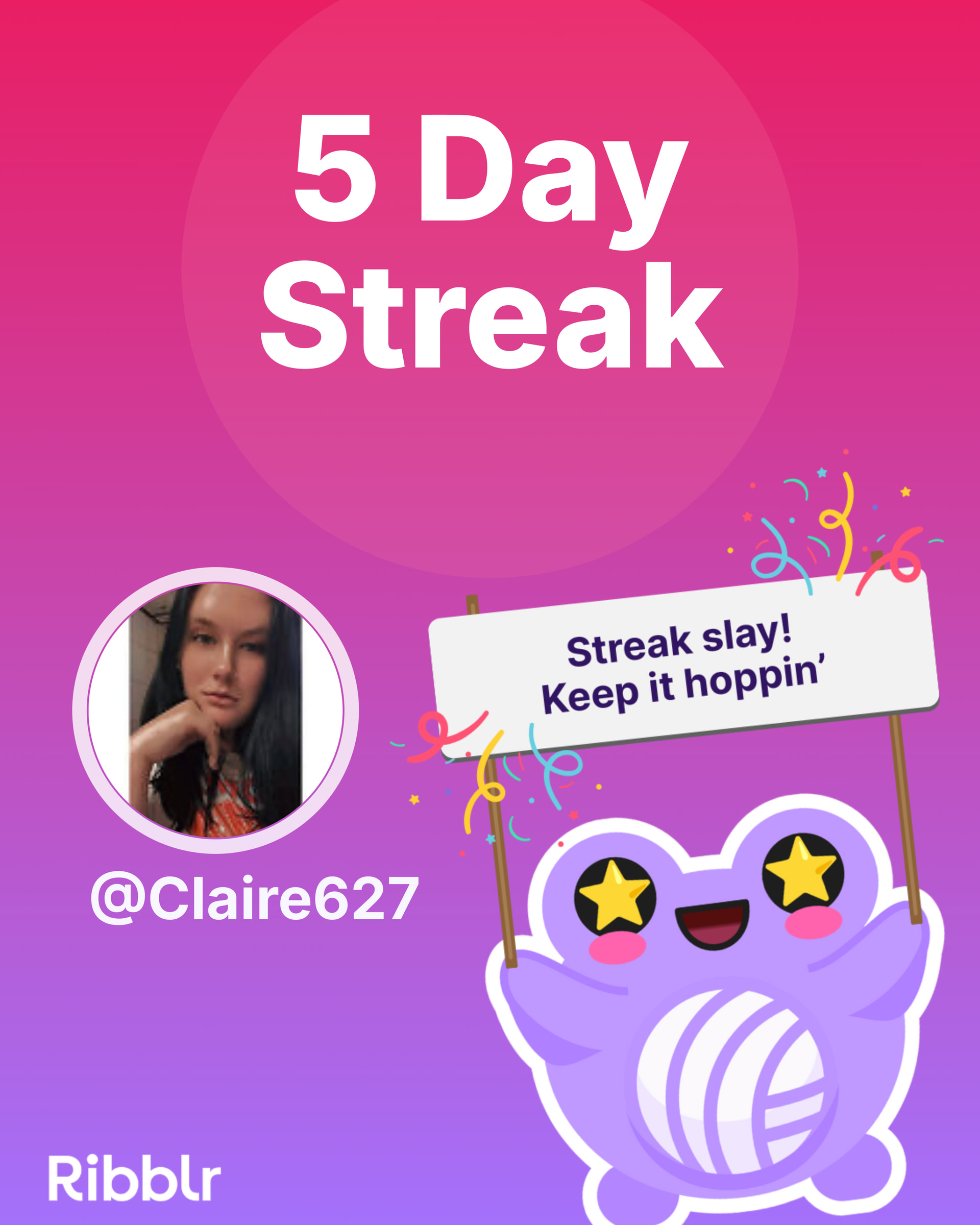 GREAT JOB! i had a ten day streak a few days ago and then i forgot to feed poor lilโ ribbot and lost itโฆ LOL